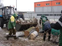 Удаленные стволы распиливали на бревна и вывозили.