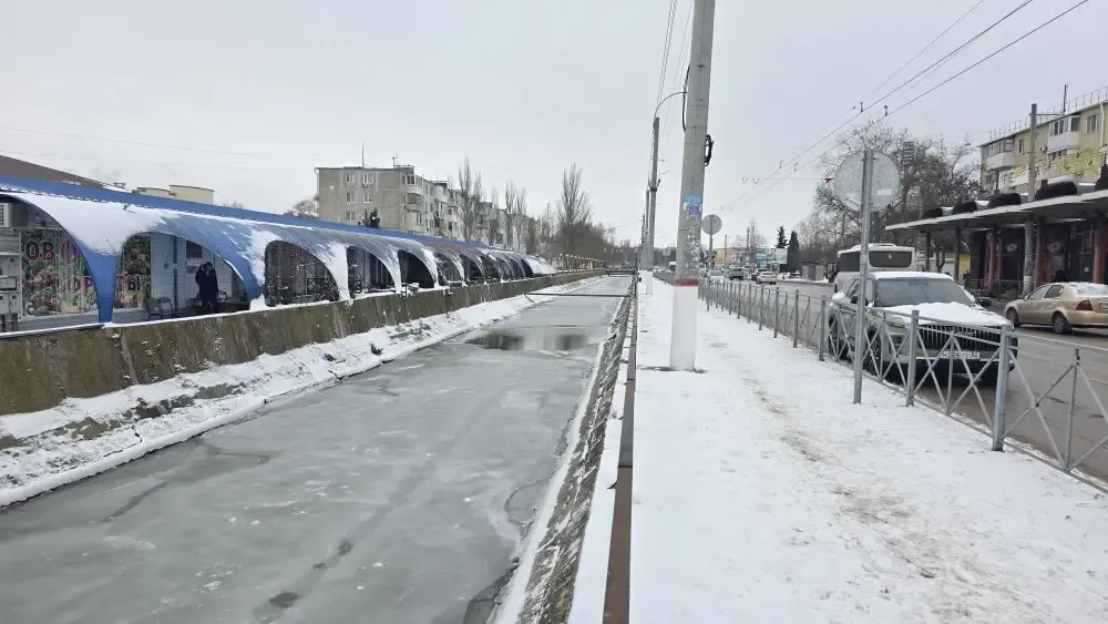 В Керчи речка Мелек-Чесме покрылась льдом. В городе уже несколько дней подряд держится минусовая температура. Сегодня, 19 января, столбики термометров показывают около -4 градусов, что способствует образованию ледяного покрова, - передает КерчьФМ.