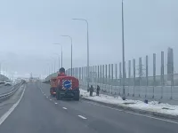 Снег на дороге-дублере не чистили, а только посыпали песком.
