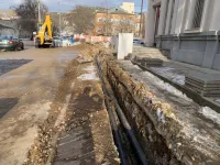 От теплопункта по Свердлова, 57 до здания поликлиники протянули 200 метров подземного трубопровода на отрезке 100 метров.