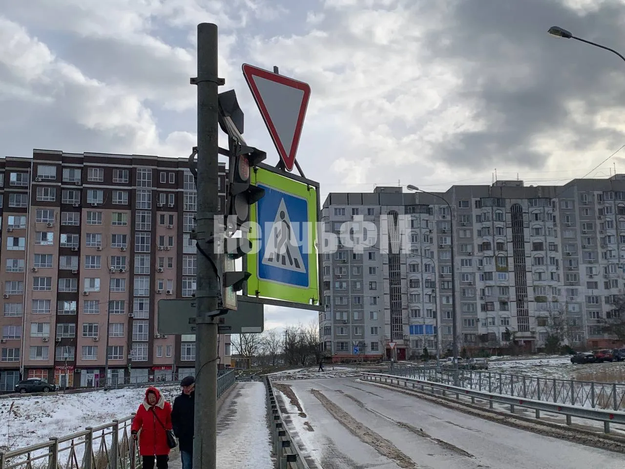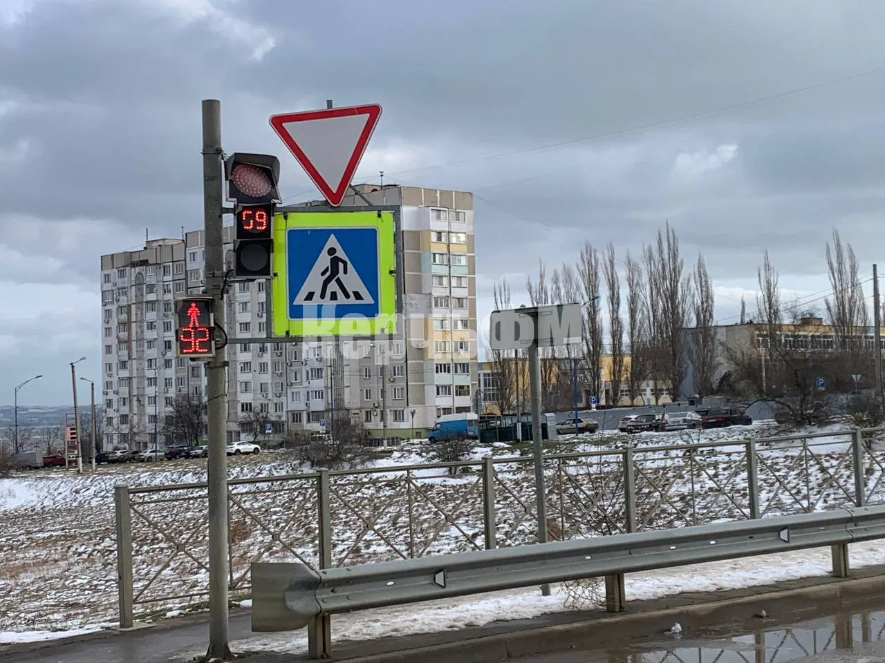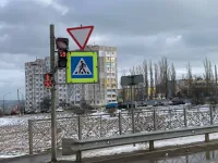 Сегодня утром, выезжающие с дороги-дублера Шоссе Героев Сталинграда на автомагистраль водители, вновь фиксировали повернутый на 180 градусов светофор и знак "уступи дорогу".