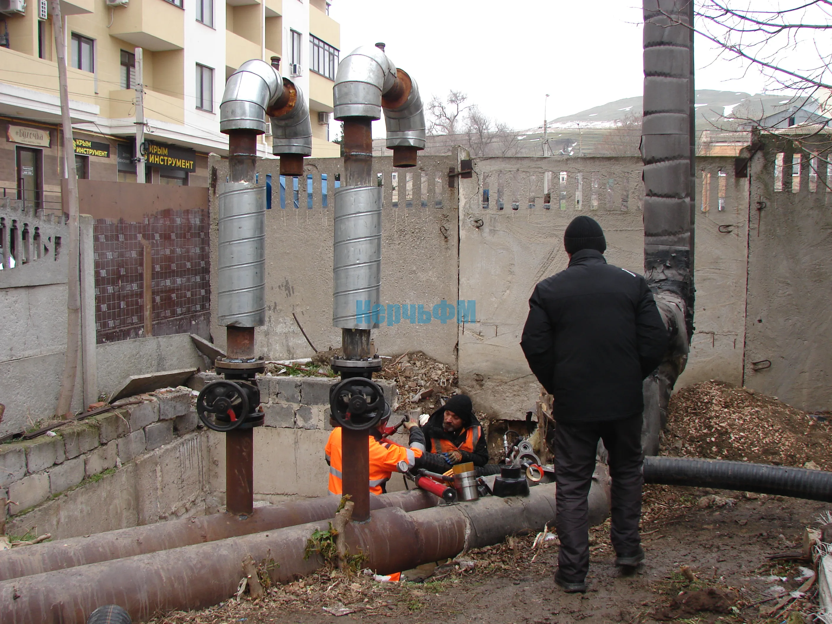 Сегодня в Керчи тепловики проводят опрессовку труб отопления к больнице водников