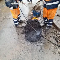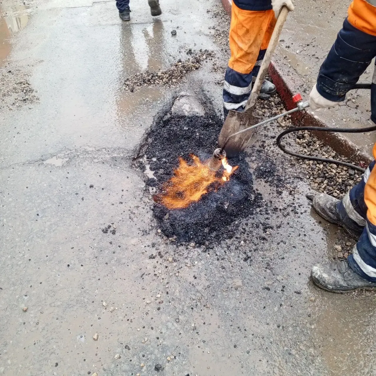 Работы выполняются холодной органоминеральной смесью (так называемого холодного асфальта). Эта технология позволяет безопасно и эффективно ликвидировать повреждения даже при минусовых температурах, когда традиционный горячий асфальт использовать невозможно. Это временное, но оперативное решение для обеспечения проезда на проблемных участках.