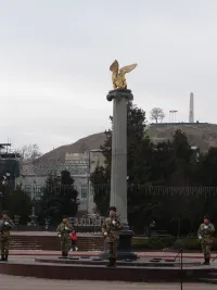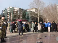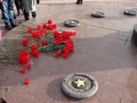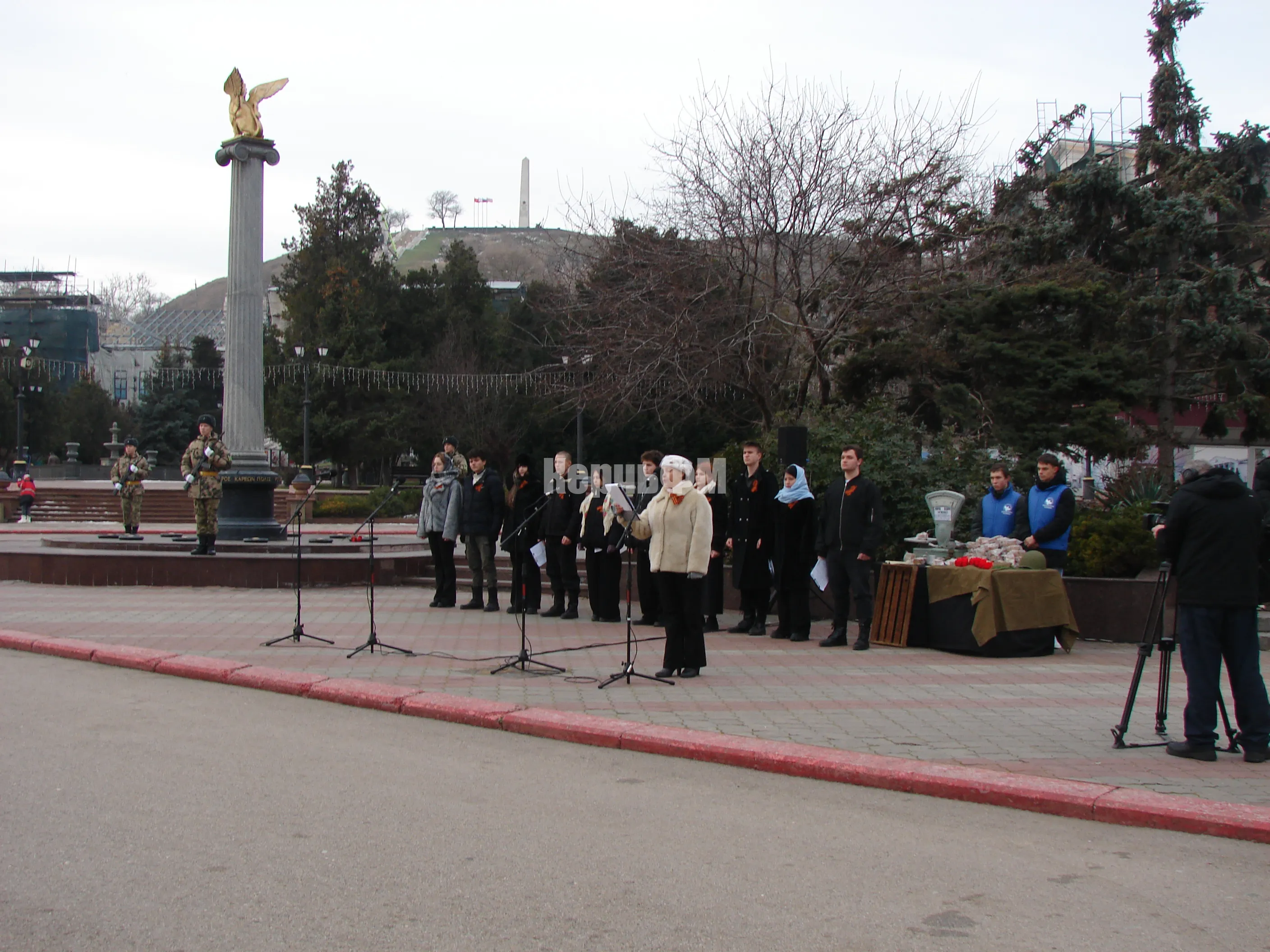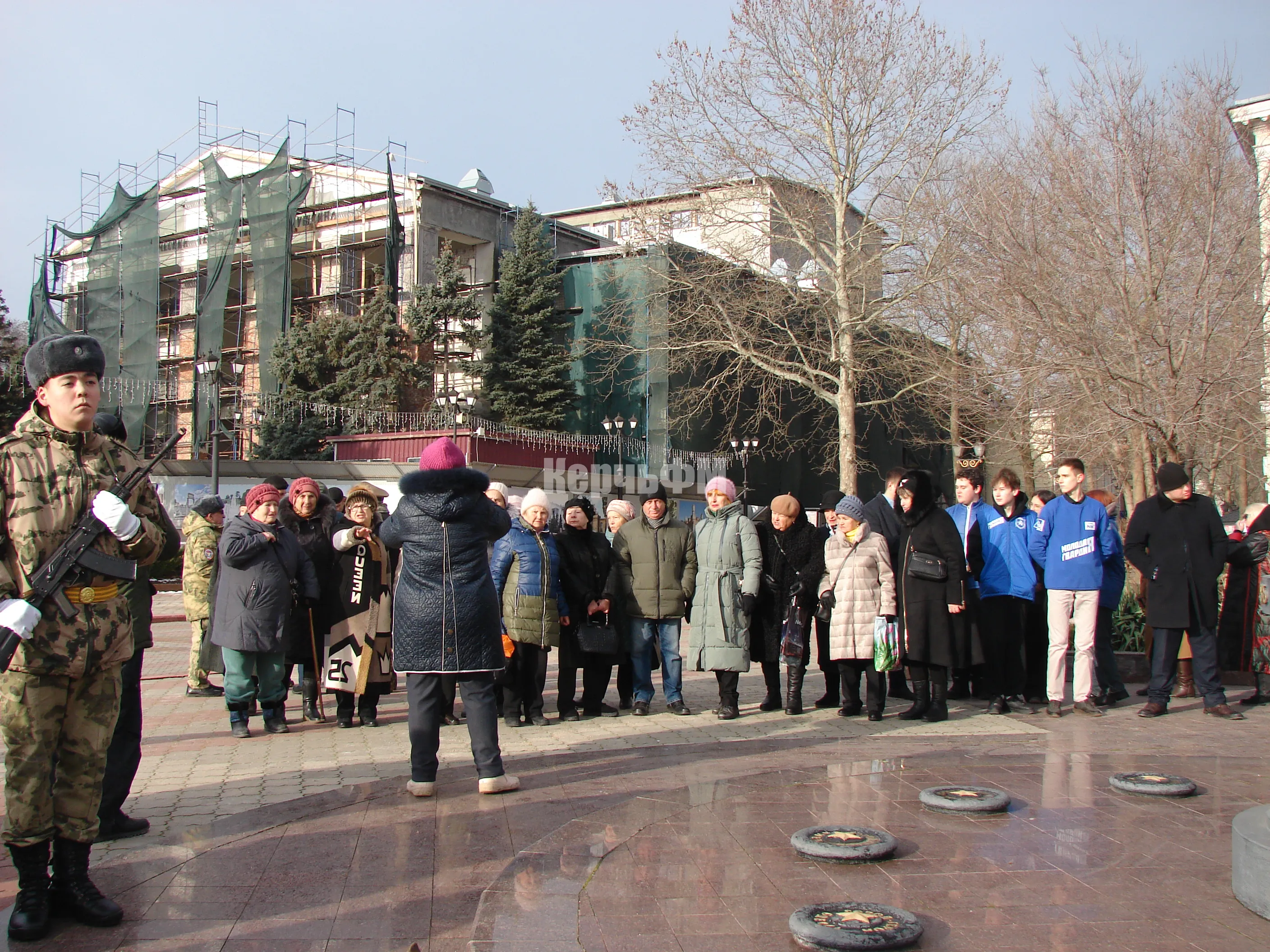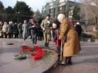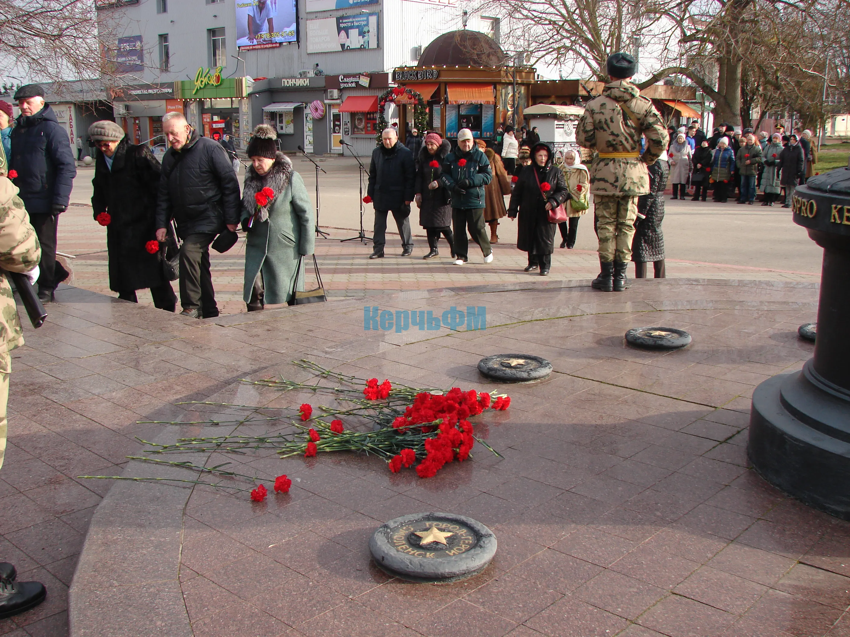 В Керчи сегодня состоялась торжественная церемония возложения цветов к капсуле с землей города-героя Ленинграда у Пантеона Славы в память о погибших.