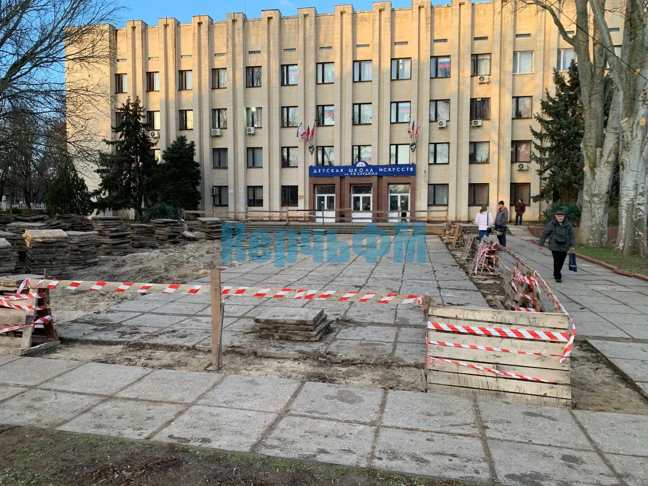 Как уже сообщал КерчьФМ в своей новостной ленте, работы по благоустройству территории возле школы искусств им. Р. Сердюка стартовали сразу после новогодних праздников.