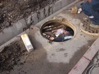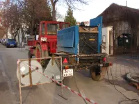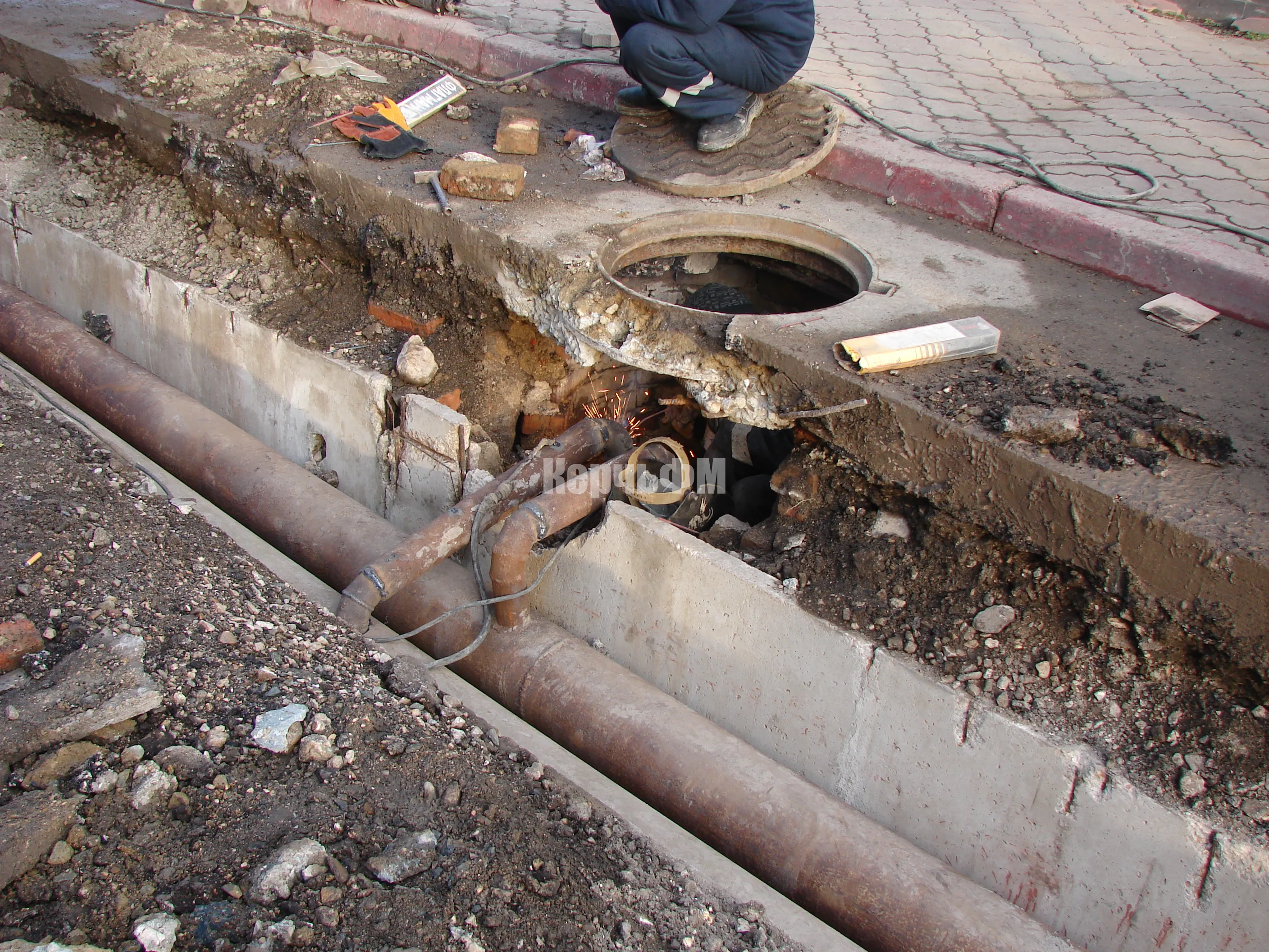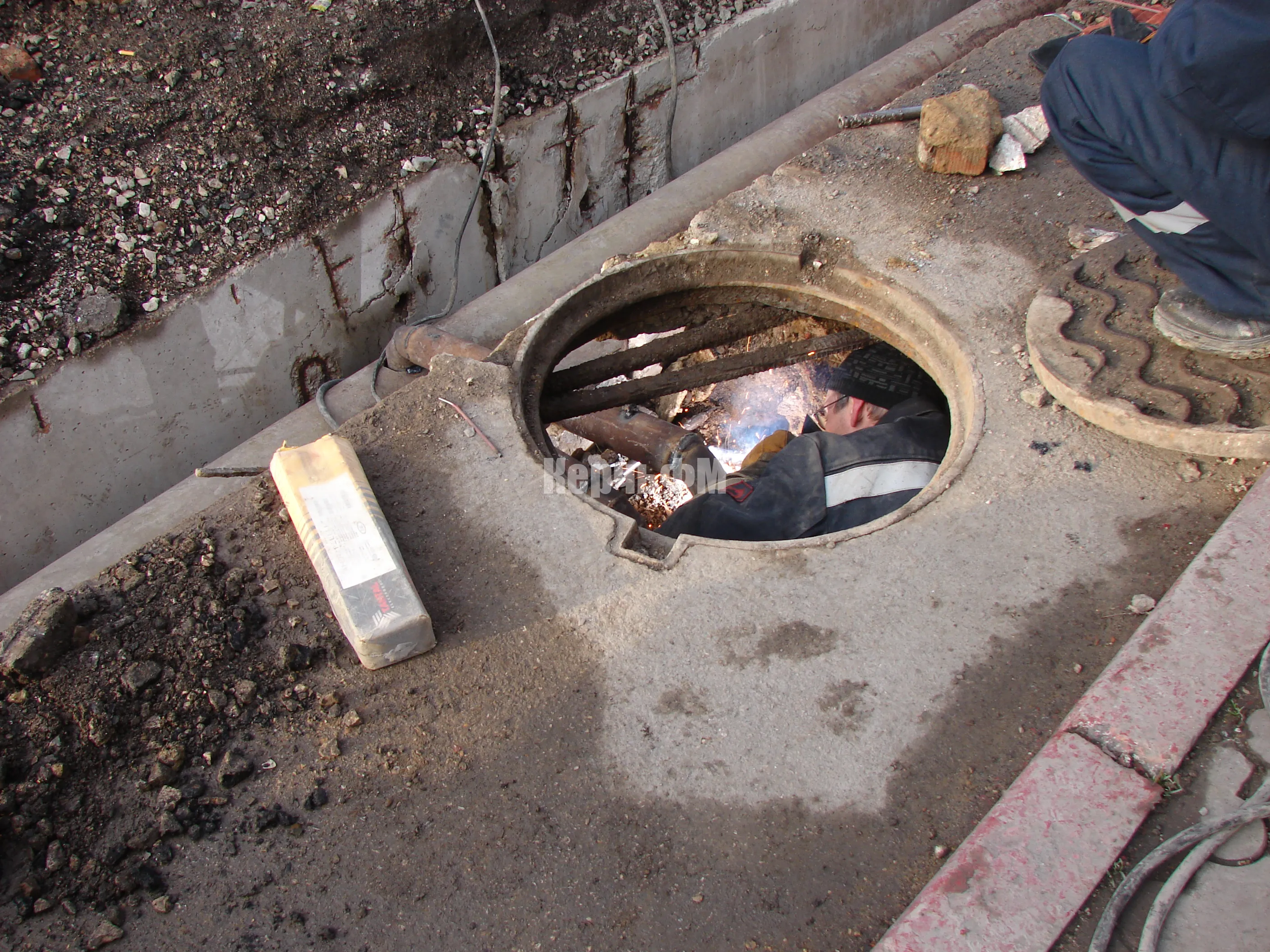 С помощью тяжелой техники над отопительным узлом сняли плиты и приступили к ремонту труб.