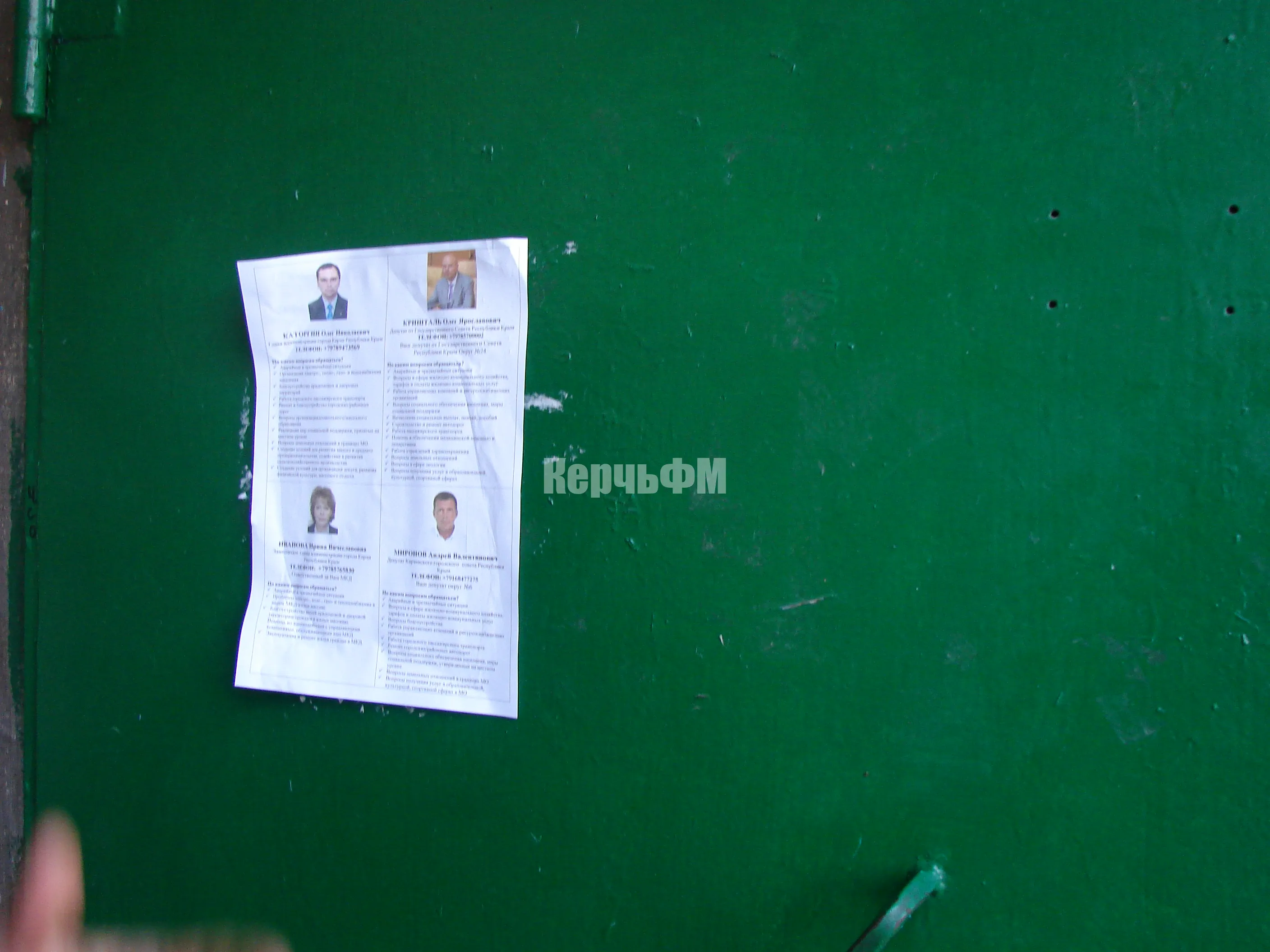 Жильцы дома не понимают, зачем так делать, если справа у каждого входа в подъезд есть доски для объявлений, передает КерчьФМ.