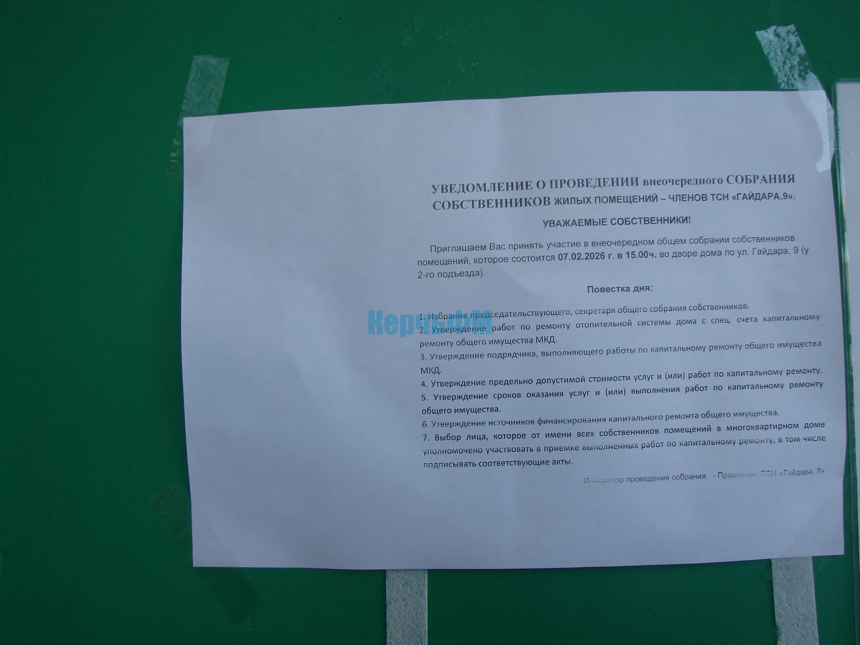 На не так давно покрашенных свежей краской подъездных дверях МКД по Гайдара, 9 поклеили информационные листки и объявления.