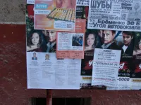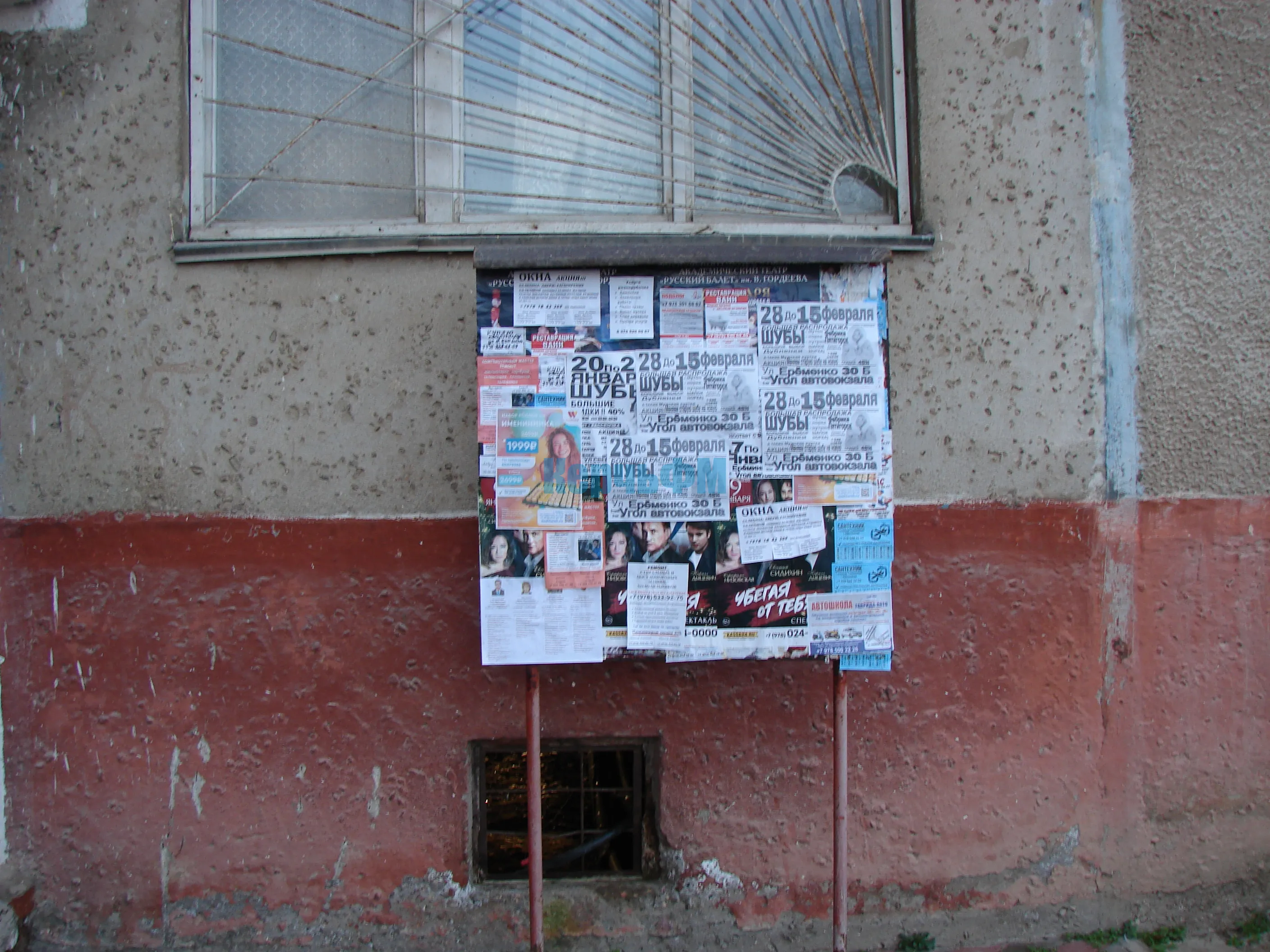 Правда, они все залеплены рекламой о распродажах одежды и афишами.