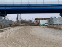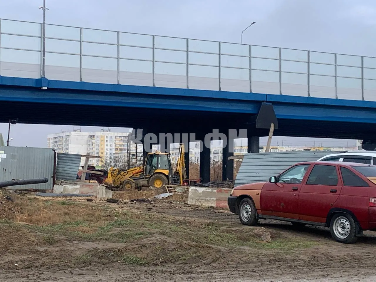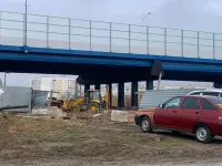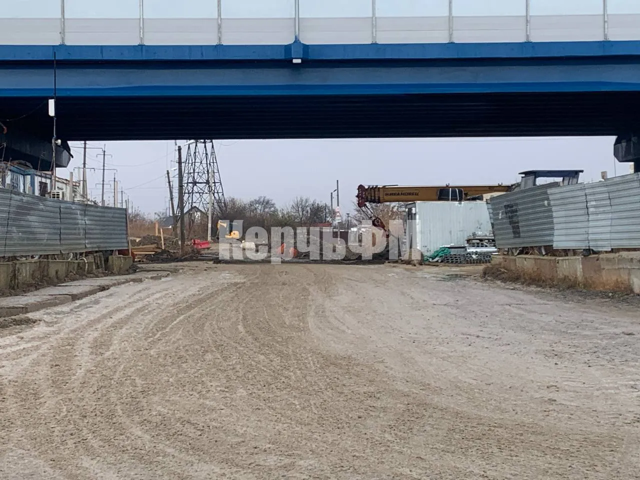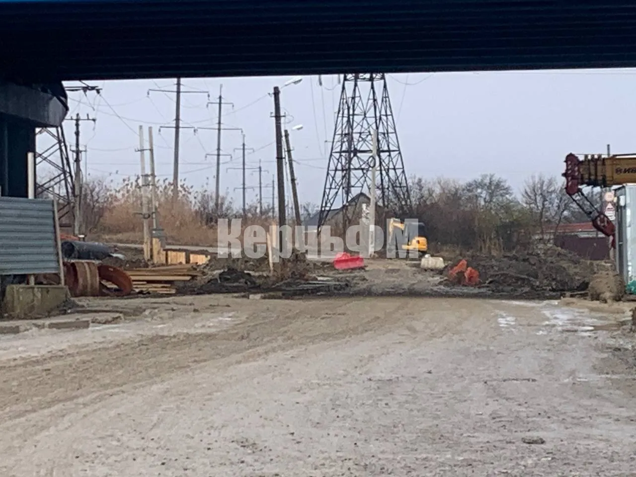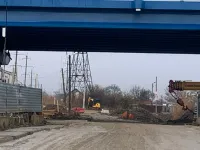 Во время проведения работ на путепроводе тяжелая техника на пешеходных зонах и проезжей части создала непроходимую грязь.