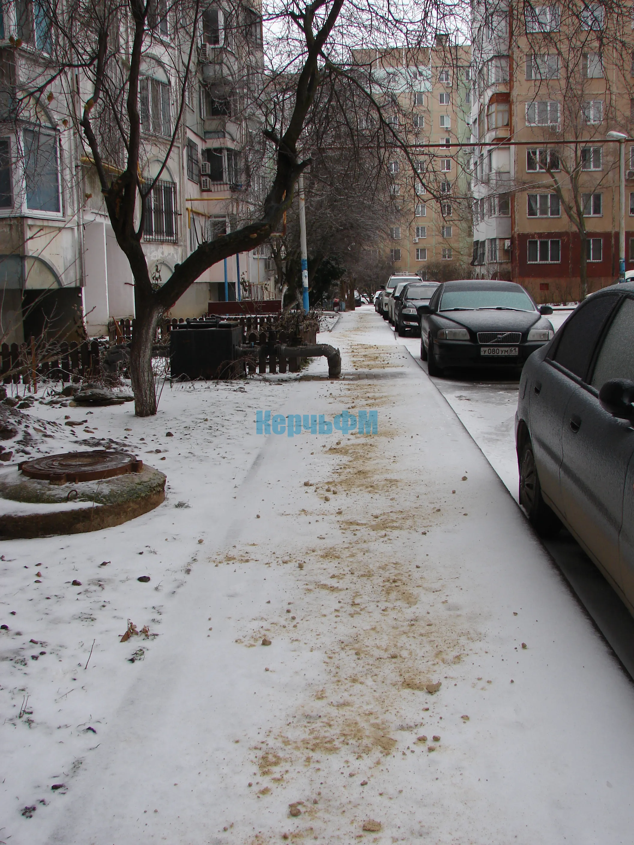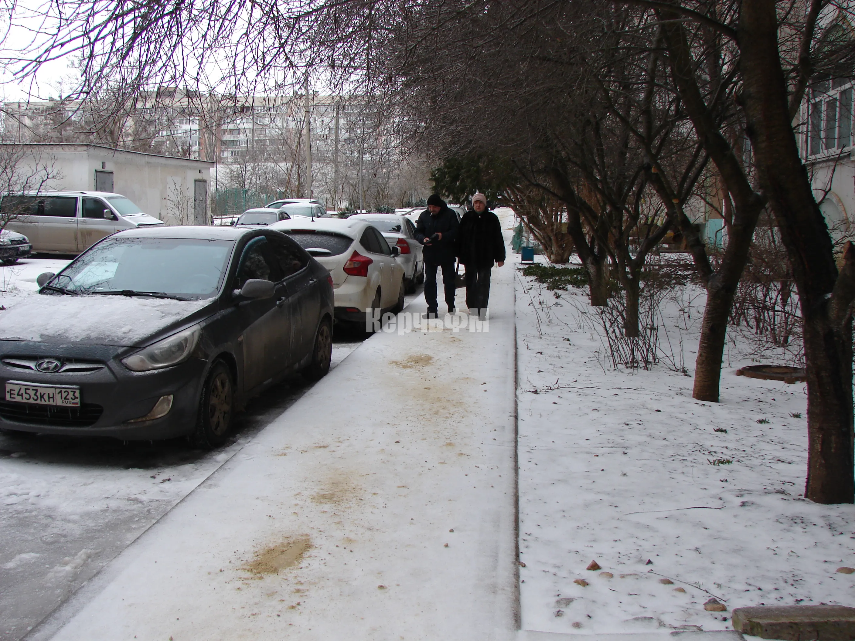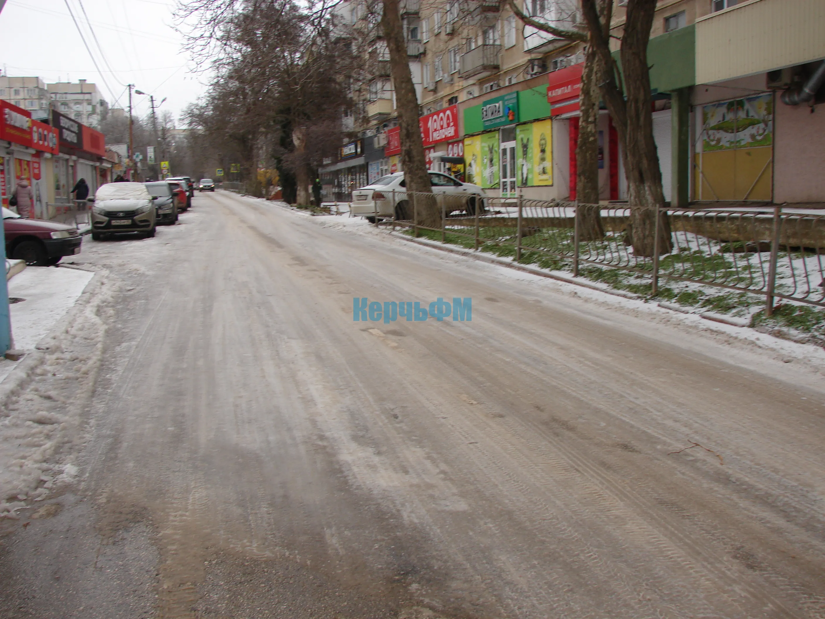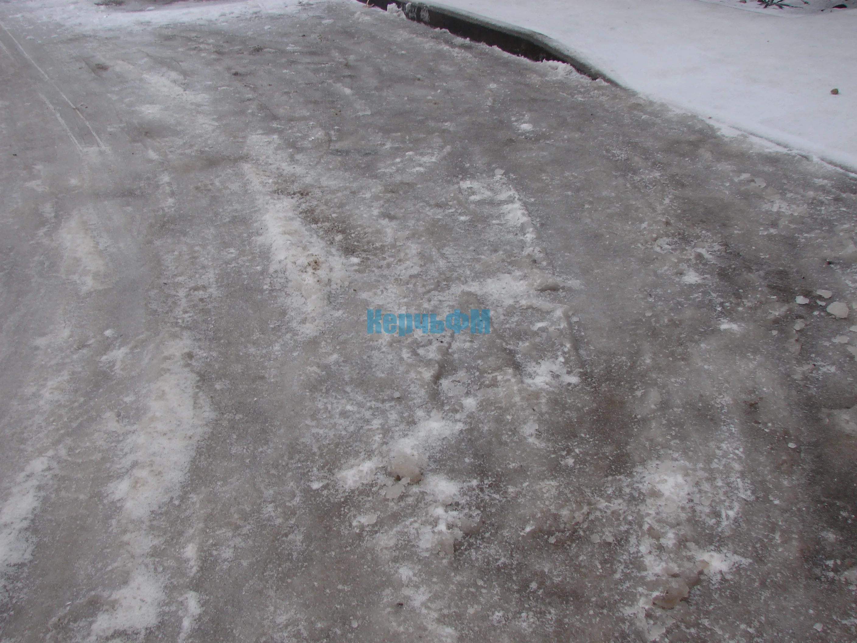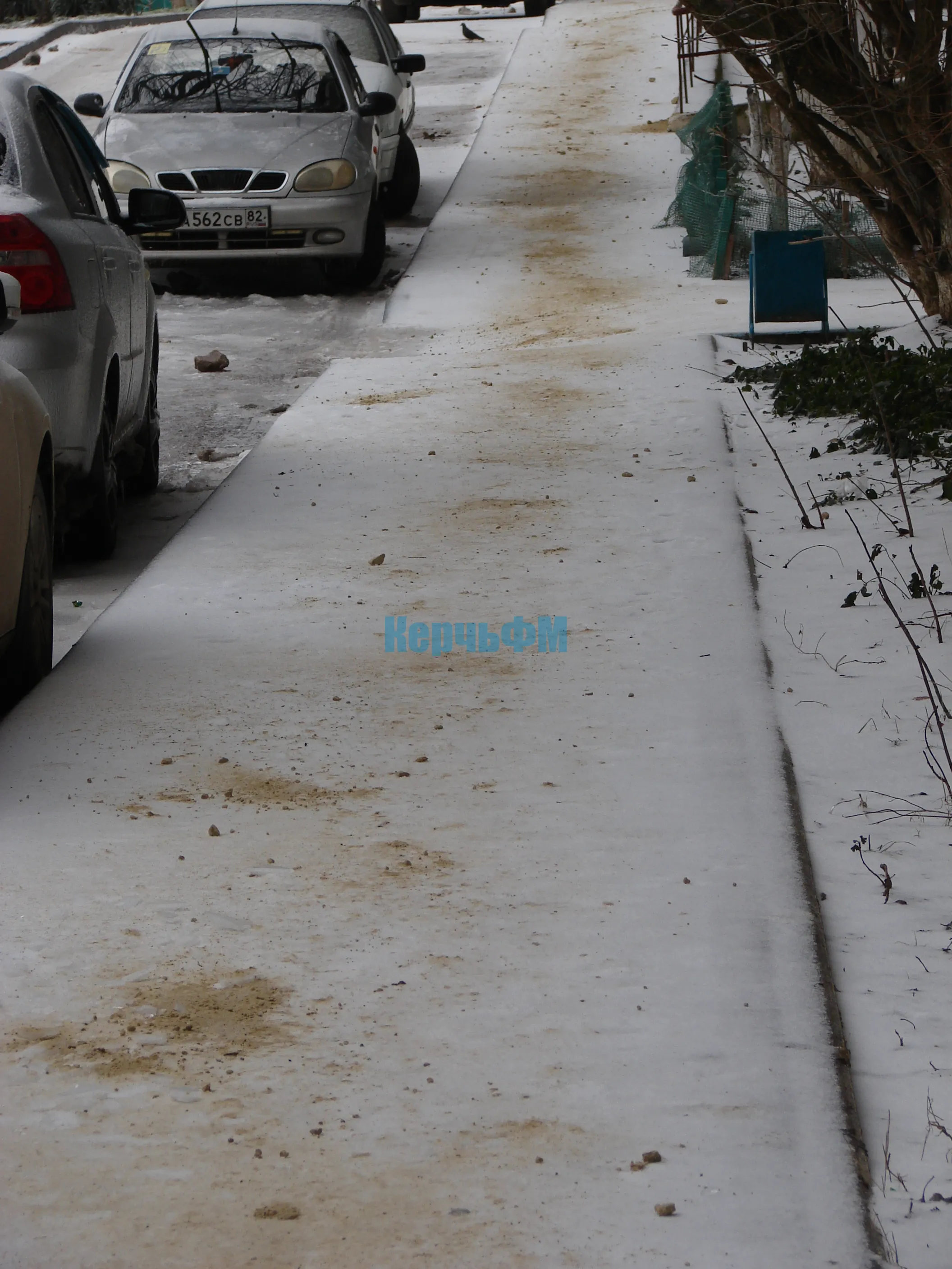 Сегодняшнее утро Керчь встретила обледенелыми тротуарами, присыпанными снегом.