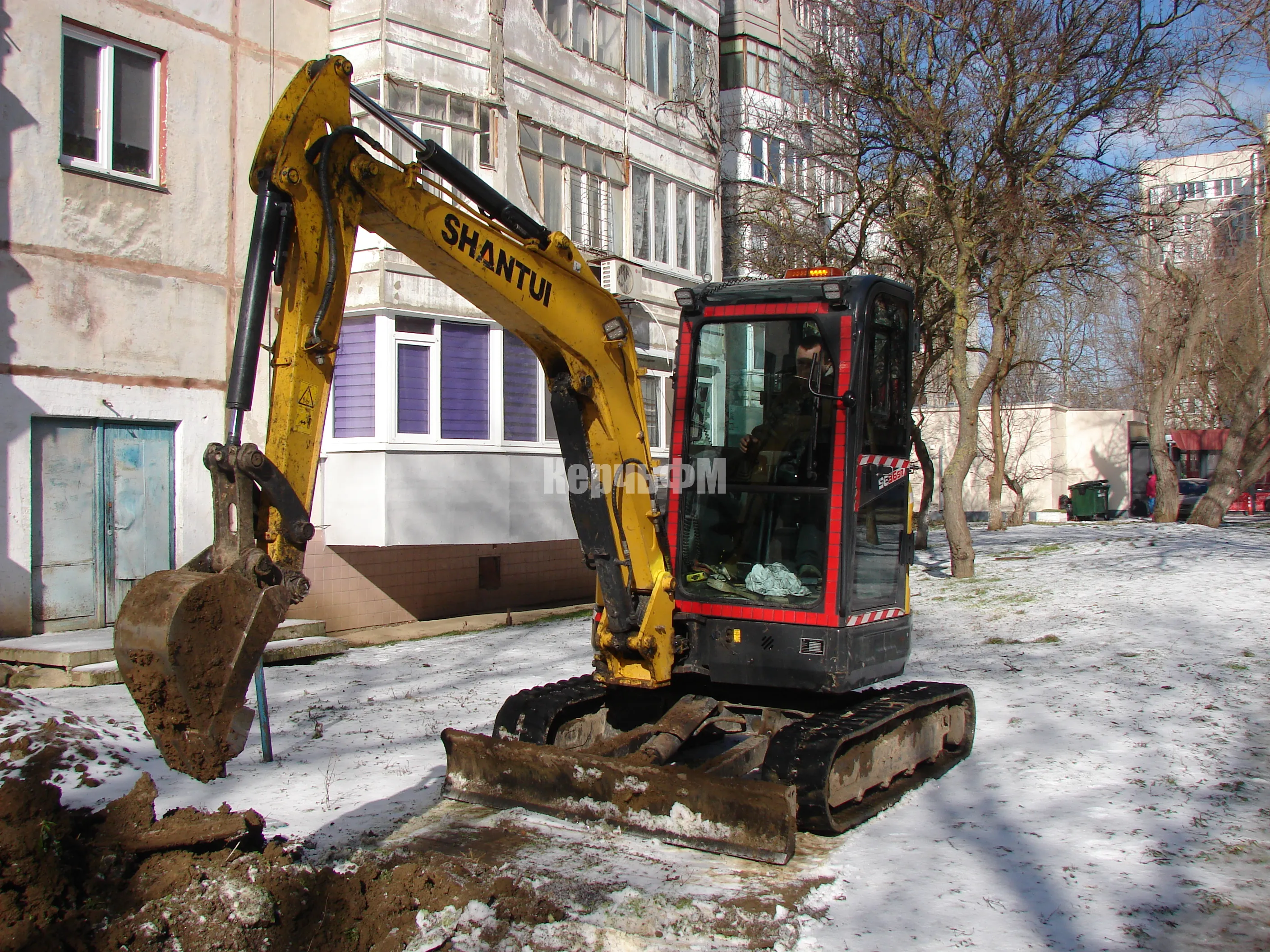 Сегодня на объекте экскаватор заканчивает рыть траншею для укладки электрокабеля.