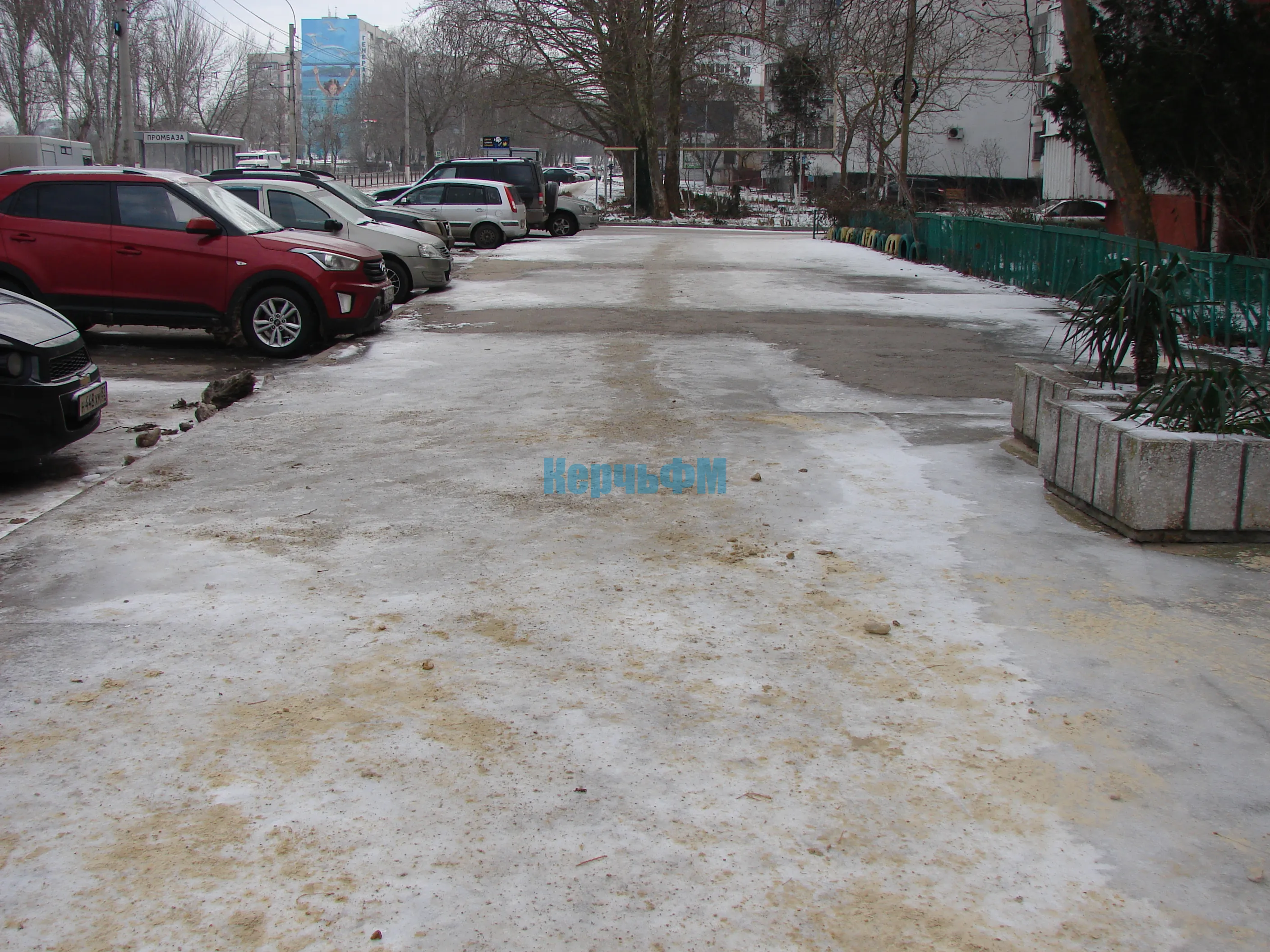 Утром подходы были обработаны достаточным количеством песка.