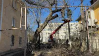 В Керчи продолжается санитарная обрезка высоких деревьев
