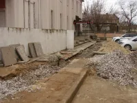Траншею вдоль здания ЗАГСа, и на противоположной стороне у больницы водников, в которую были уложены трубы центрального отопления, засыпали щебнем.