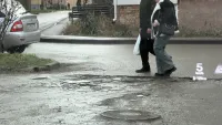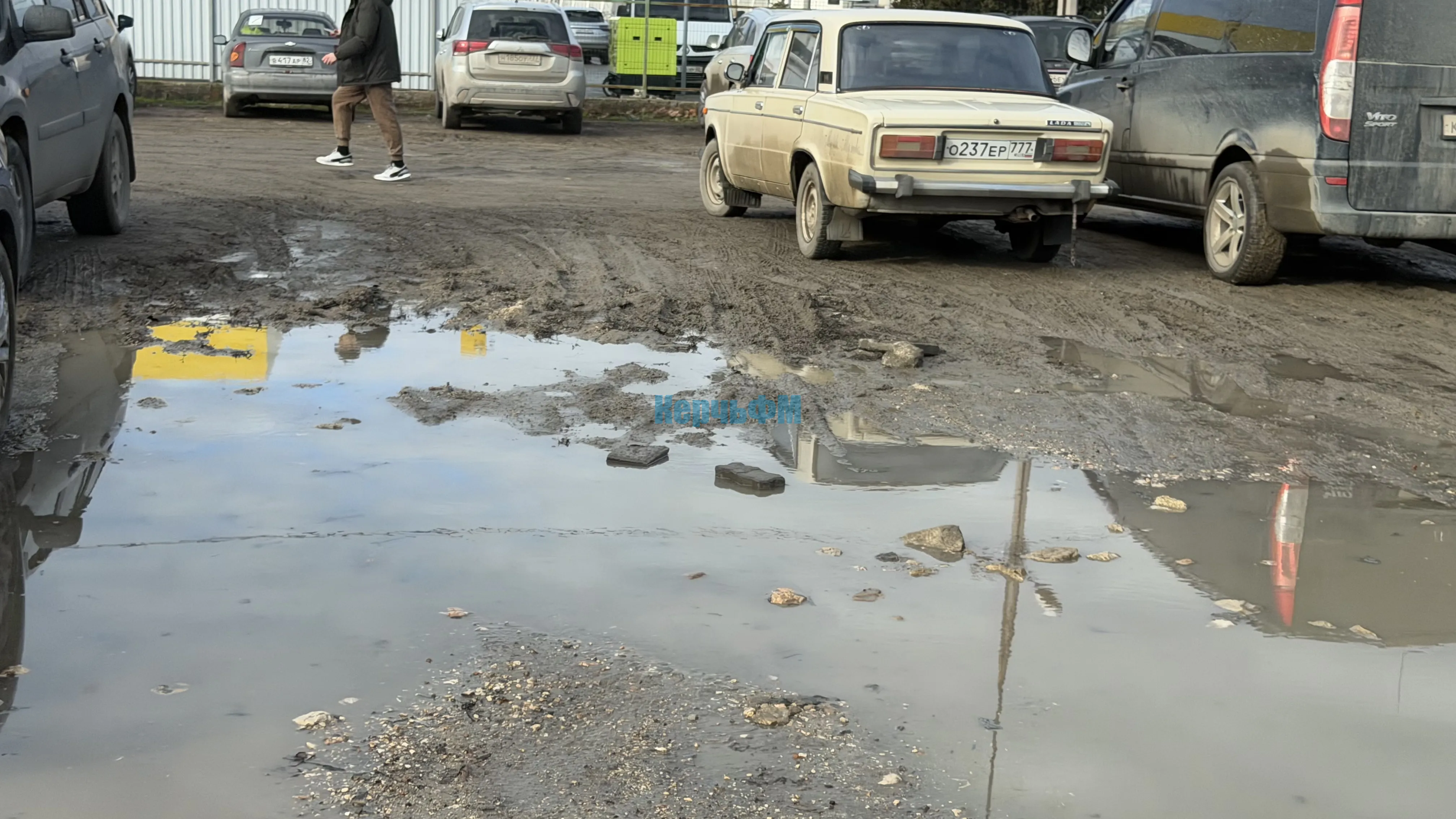 Однако за прошедшее время дорожное покрытие так и не привели в порядок. Площадка остается в ямах и грязи, а посетителям рынка приходится идти по лужам.