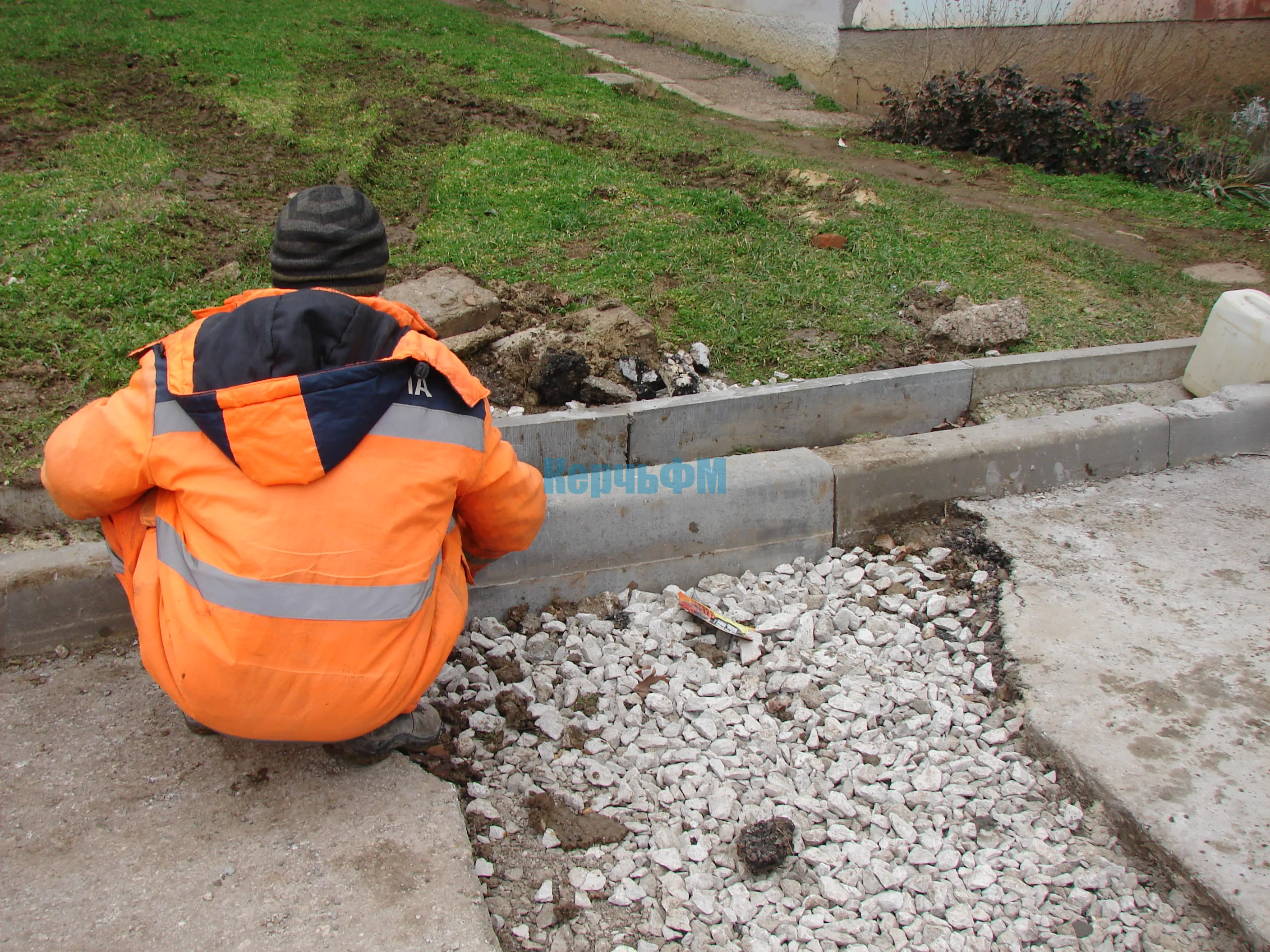 Сегодня дорожники устанавливают фрагменты бордюрного камня в местах разрушений у дома №22, передает КерчьФМ.