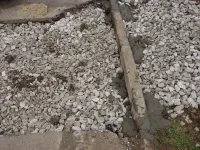 Поперечная траншея засыпана щебнем и готова к асфальтированию.