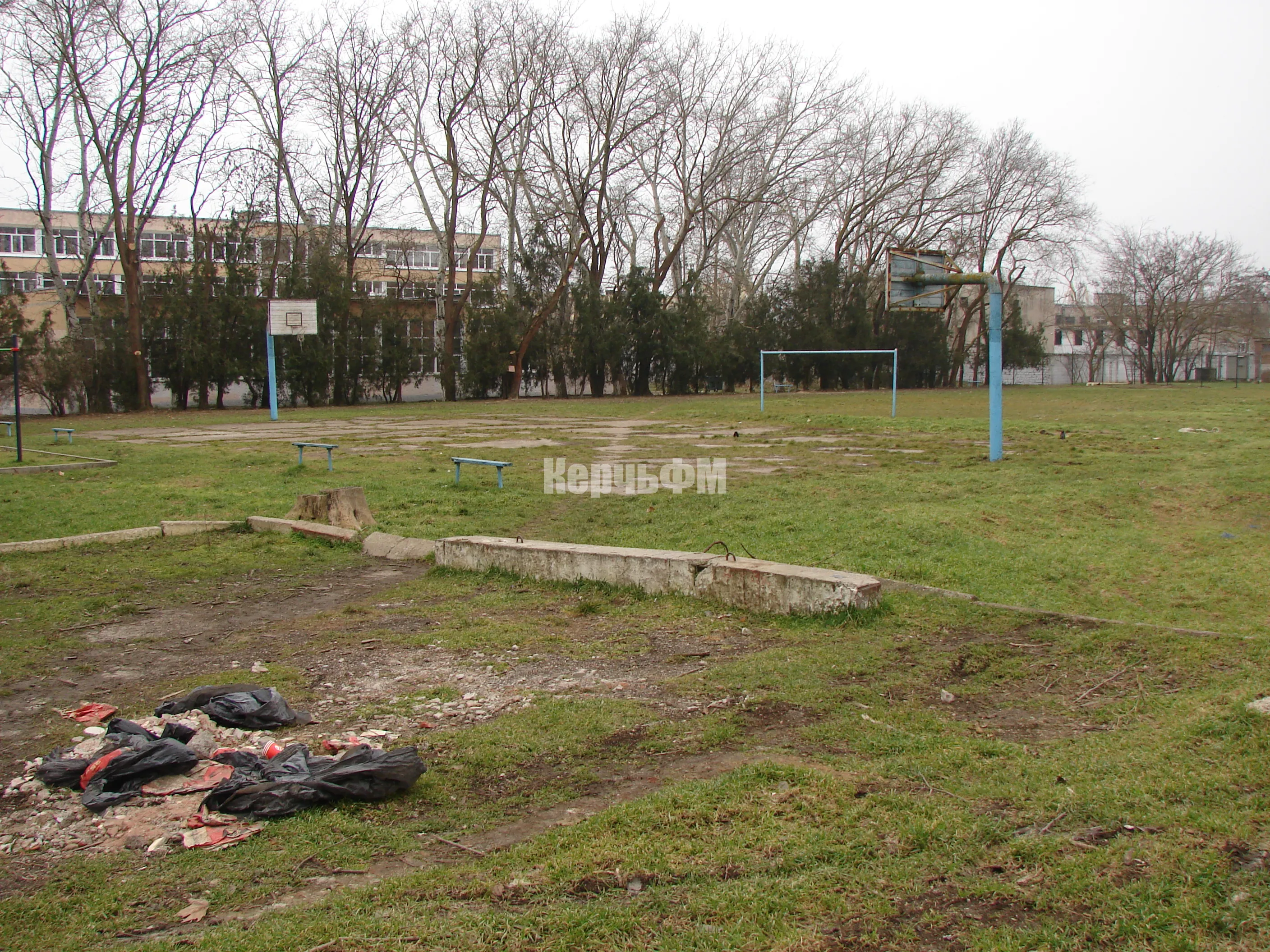 Точнее, со стороны стадиона школы, который давно и остро нуждается в ремонте.