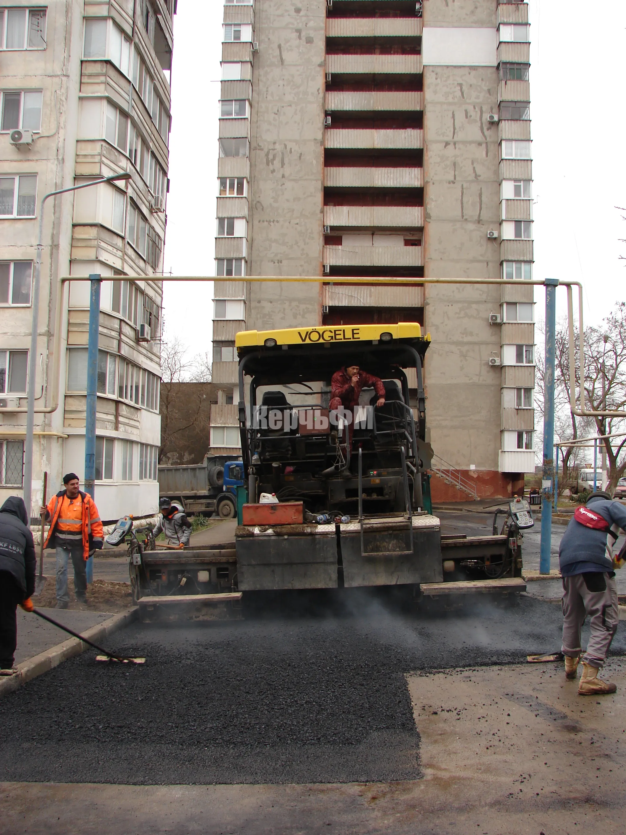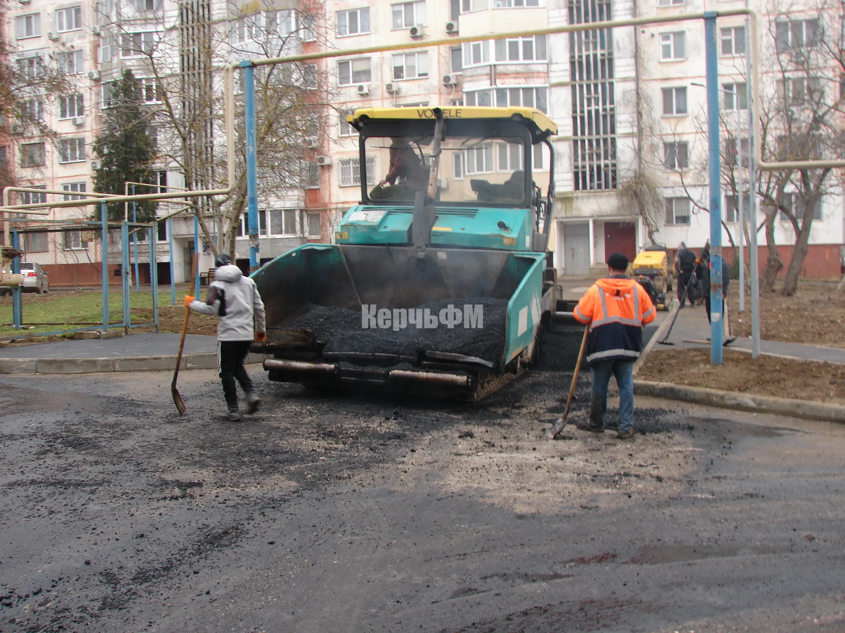 Так, перед домом №18 после ремонта сетей теплоснабжения укладывают асфальт.