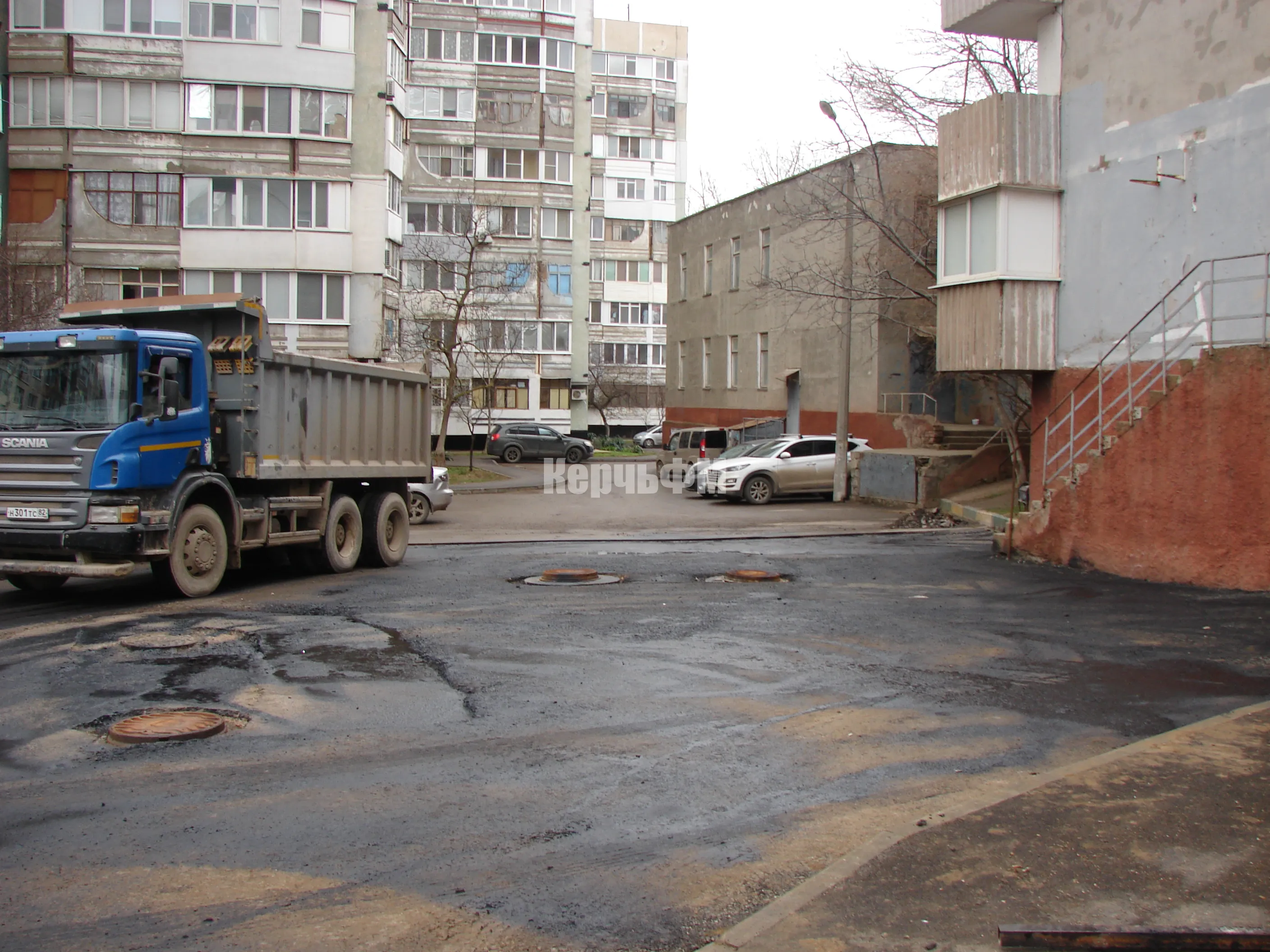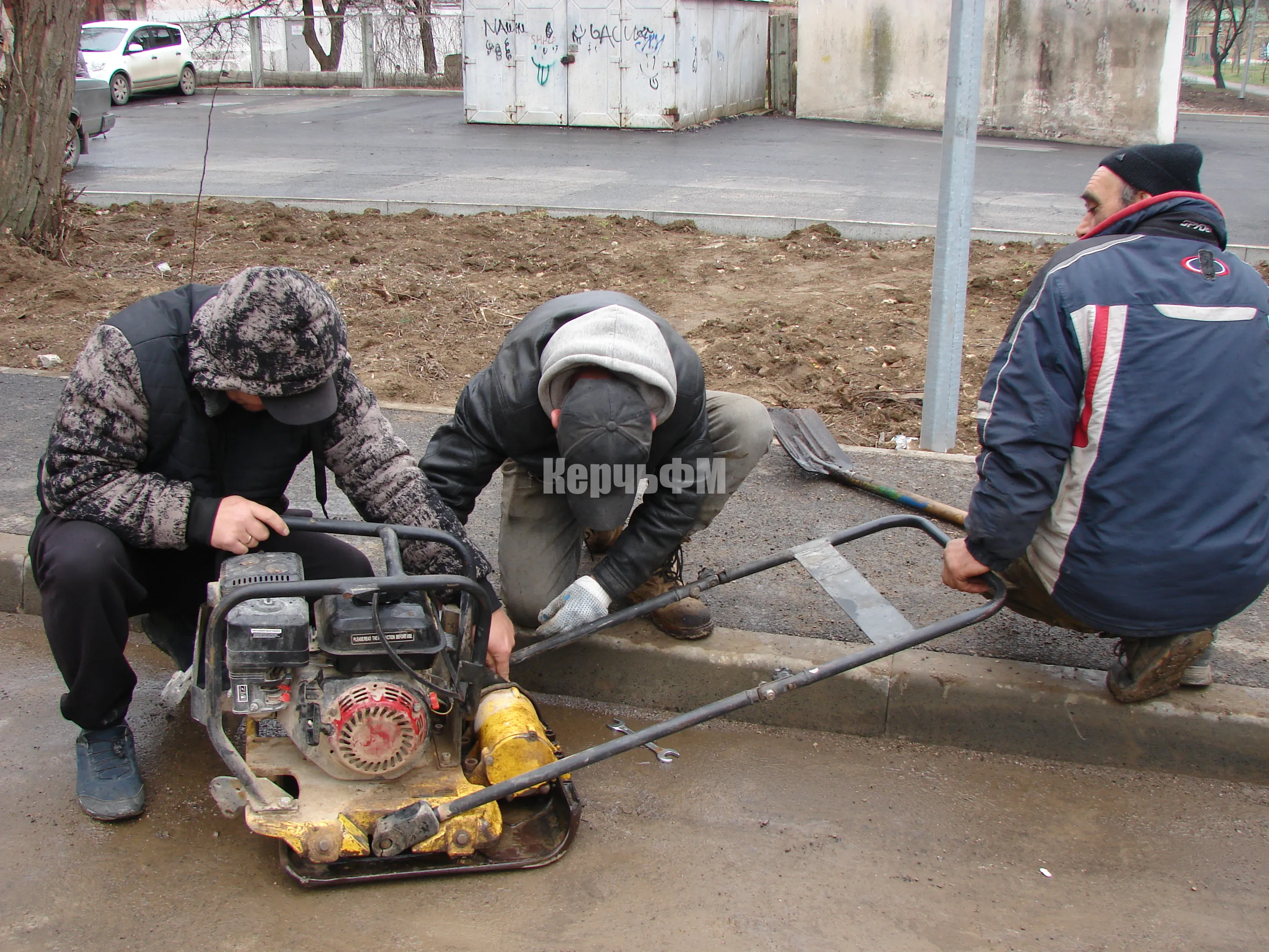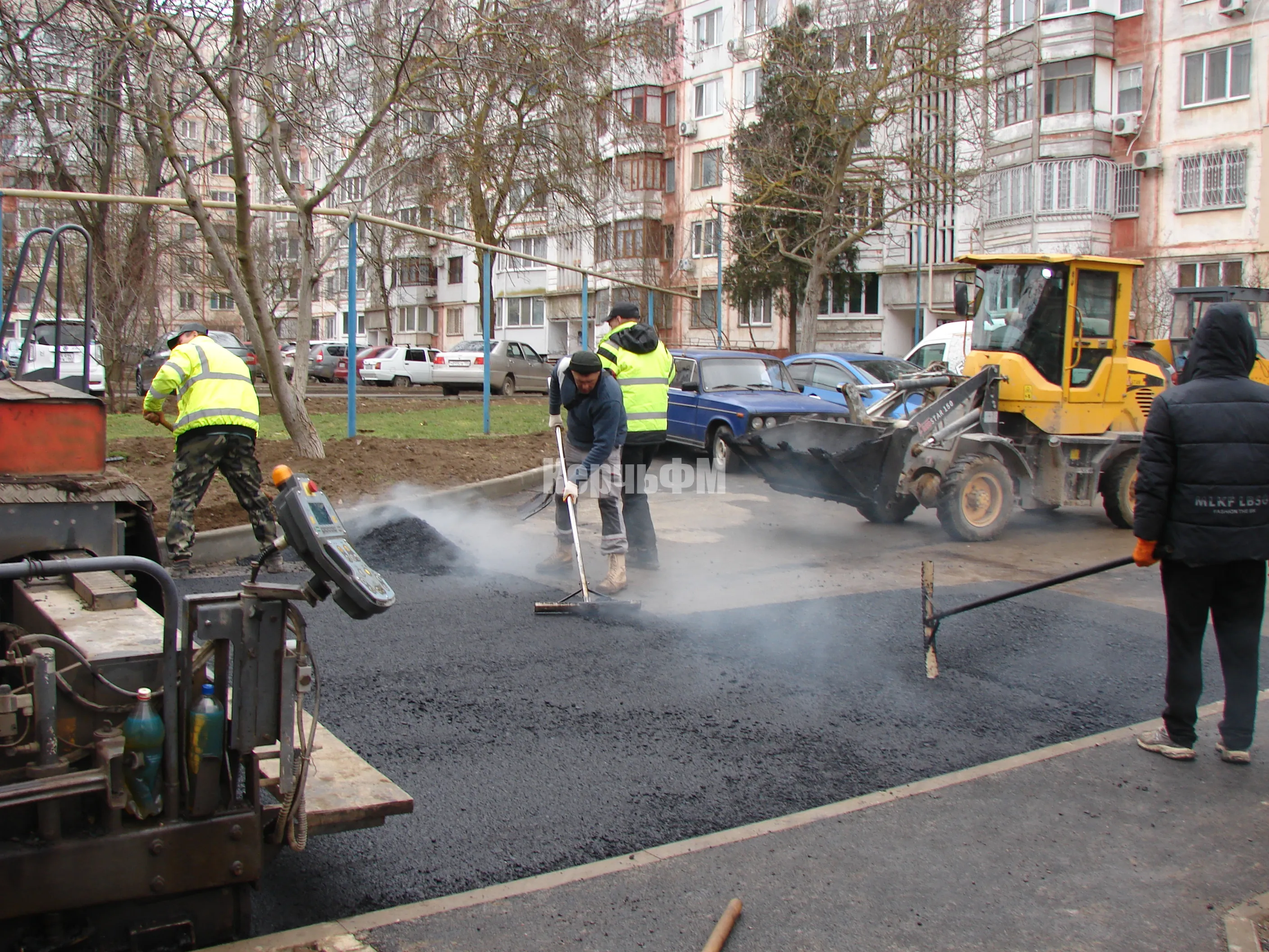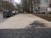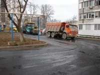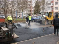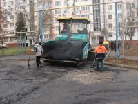 Отметим, что при выполнении работ внутри двора, строители не забывают о дорогах и тротуарах вдоль фасадов зданий.