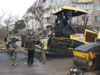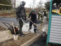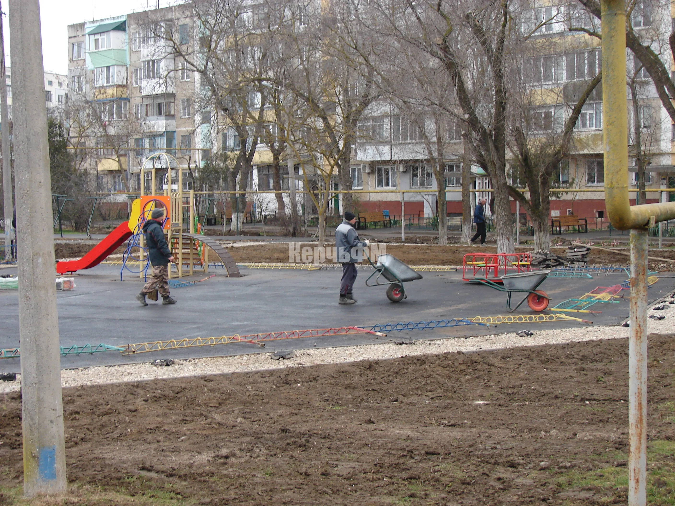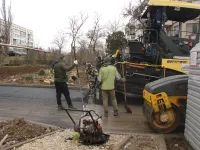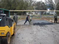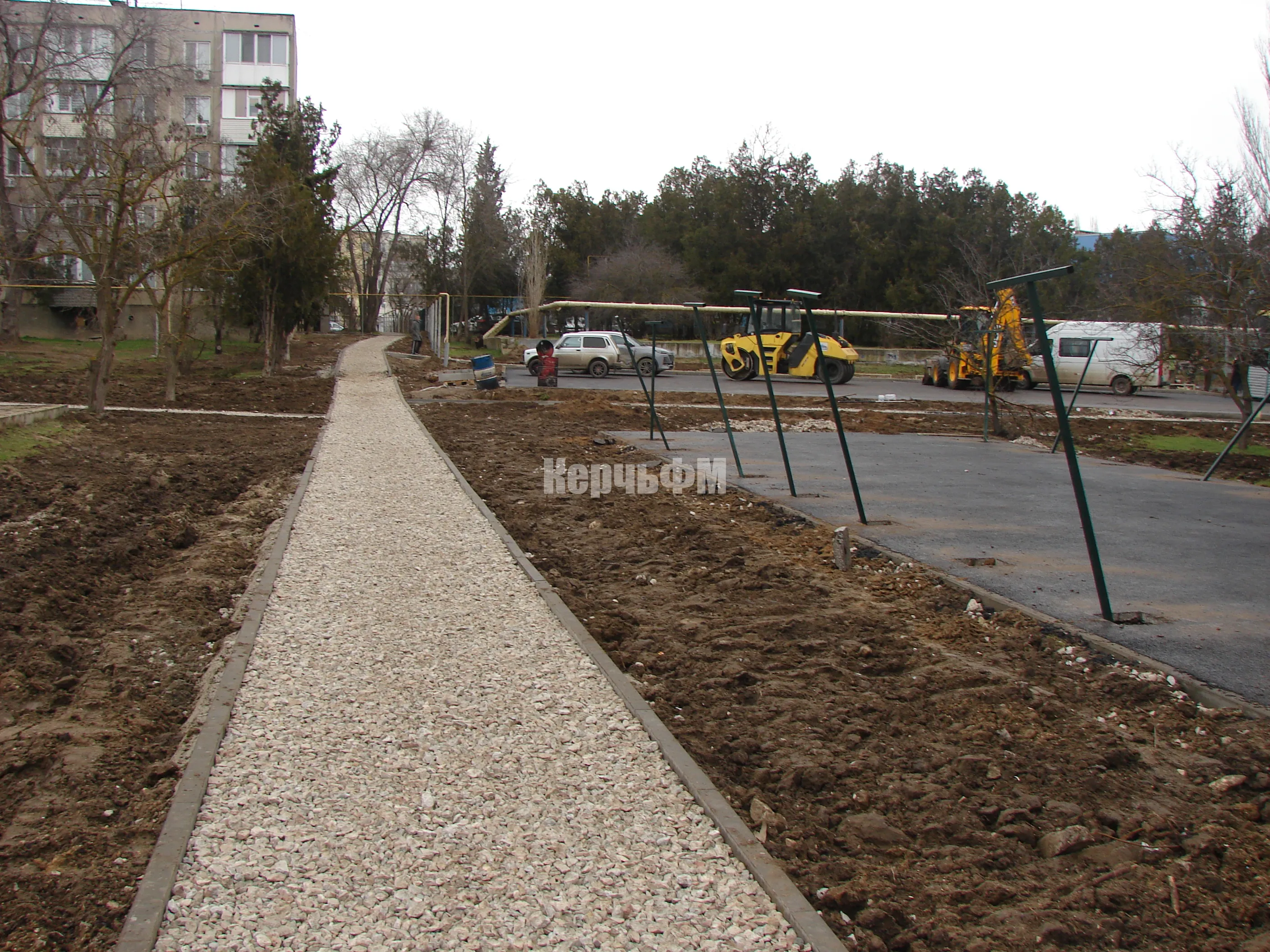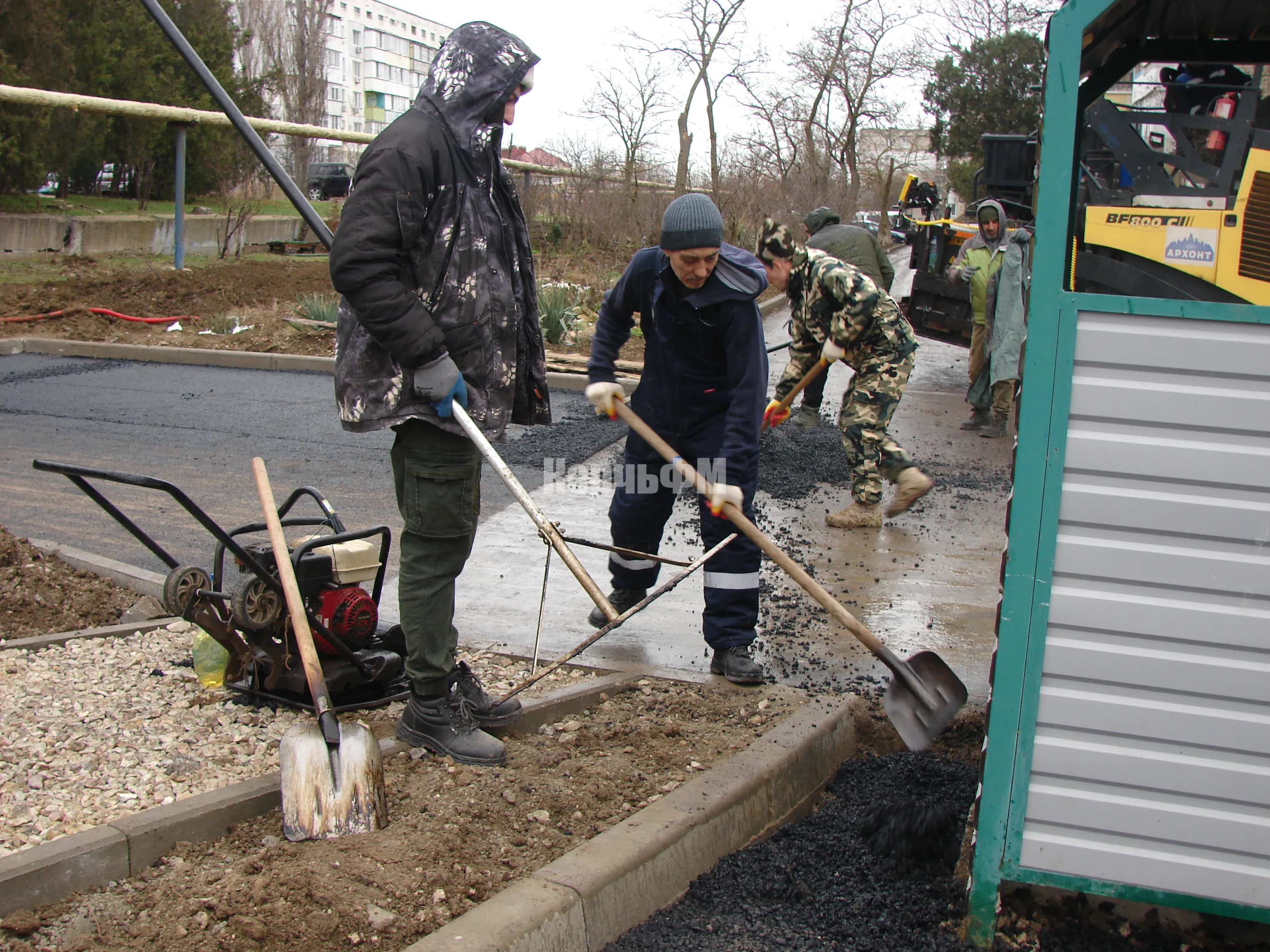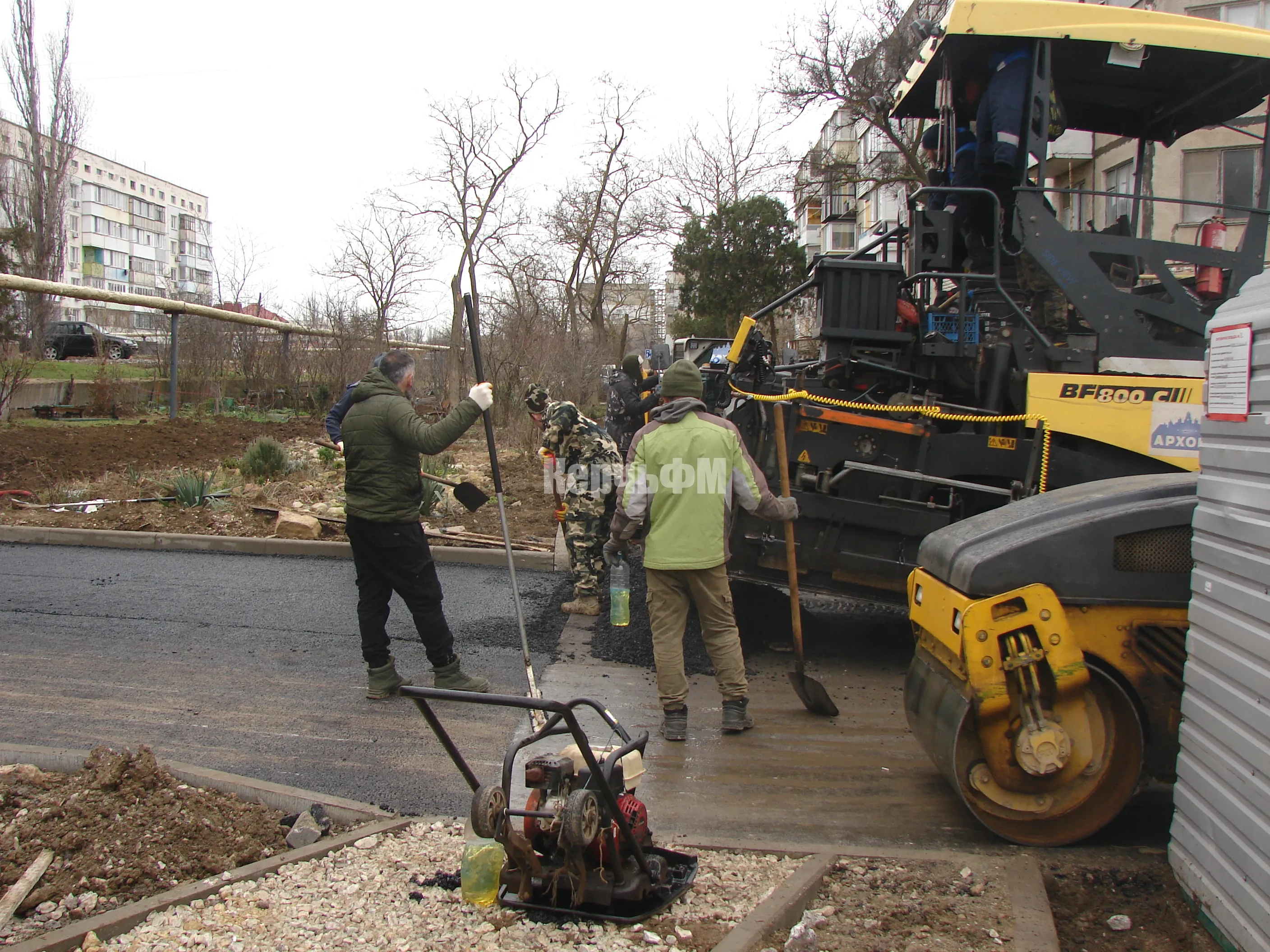 Устроители приступили к укладке второго слоя асфальта на подъездных дорогах, передает КерчьФМ.