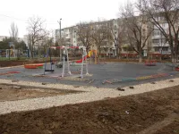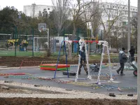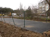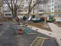 В настоящее время заканчивается установка элементов на детской площадке.