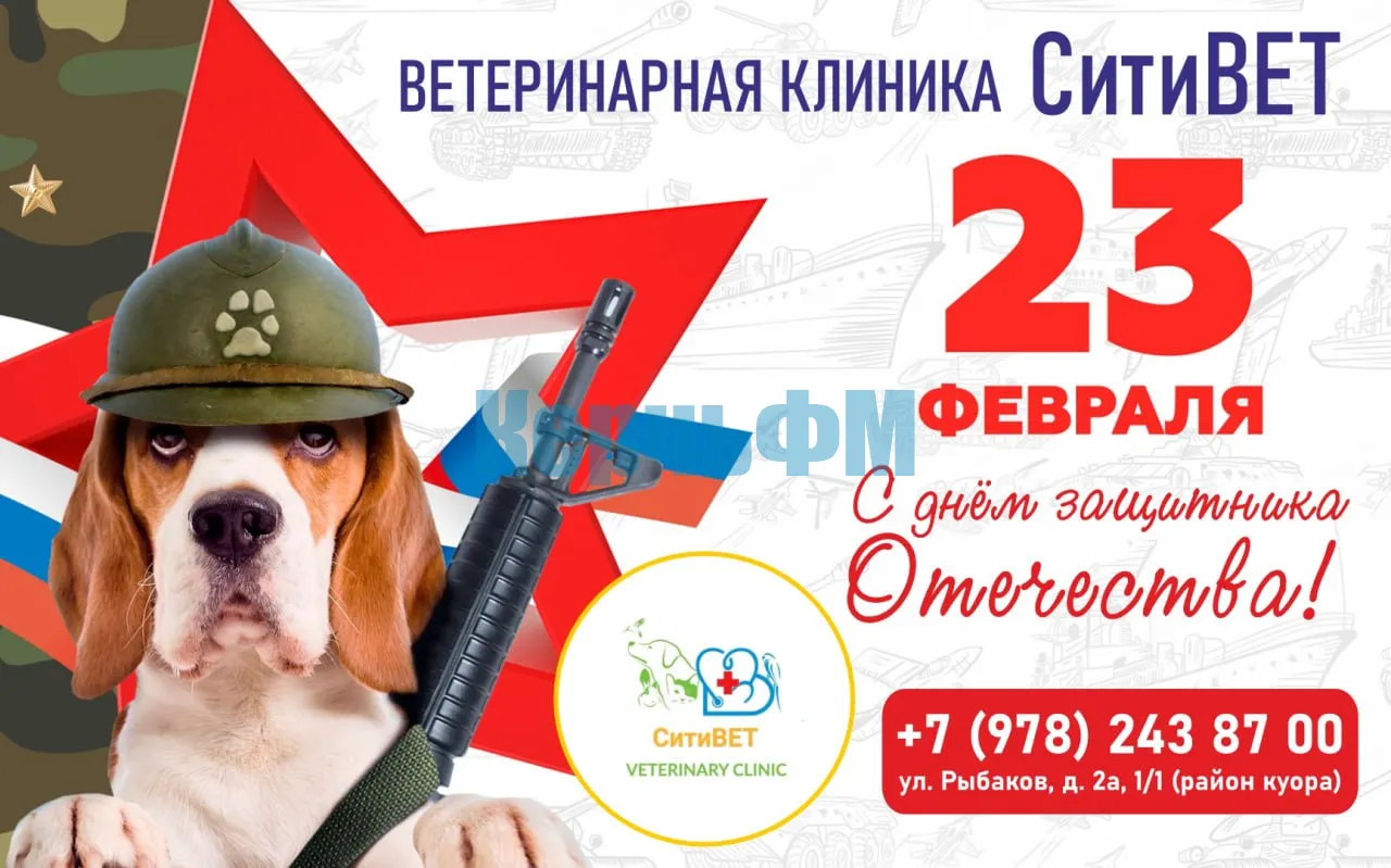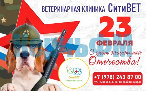 Коллектив ветеринарной клиники СитиВет от всей души поздравляет вас с Днём защитника Отечества!
