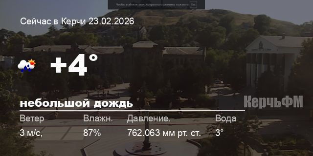 Сегодня днем в Керчи, 23 февраля, ожидается малооблачная погода, температура воздуха от +4.3° до +5.4°С, ветер северный 2.09 м/с, порывы до 4.68 м/с, давление 762.8 мм рт. ст., влажность 76%.