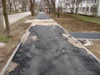 Укладка асфальта на аллее вдоль МКД по Сморжевского, 3 началась перед выходными.