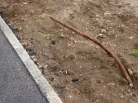 Жительница дома Галина пожаловалась также на то, что весь строительный мусор на свободных и расчищенных от зарослей территориях был просто засыпан землей, а вдоль тротуара с торца дома до сих пор торчат куски арматуры.