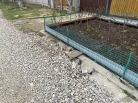 Более того, ковш экскаватора разрушил отмостку у одного из палисадников дома.
