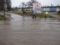 Его изрядно подтопило, но водителей легковых авто это не останавливает, и они осторожно проезжают данный отрезок пути, сокращая дорогу к Горьковскому мосту.
