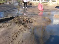 Позавчера на недавно заасфальтированной дороге по улице Энгельса бежала канализационная "река".