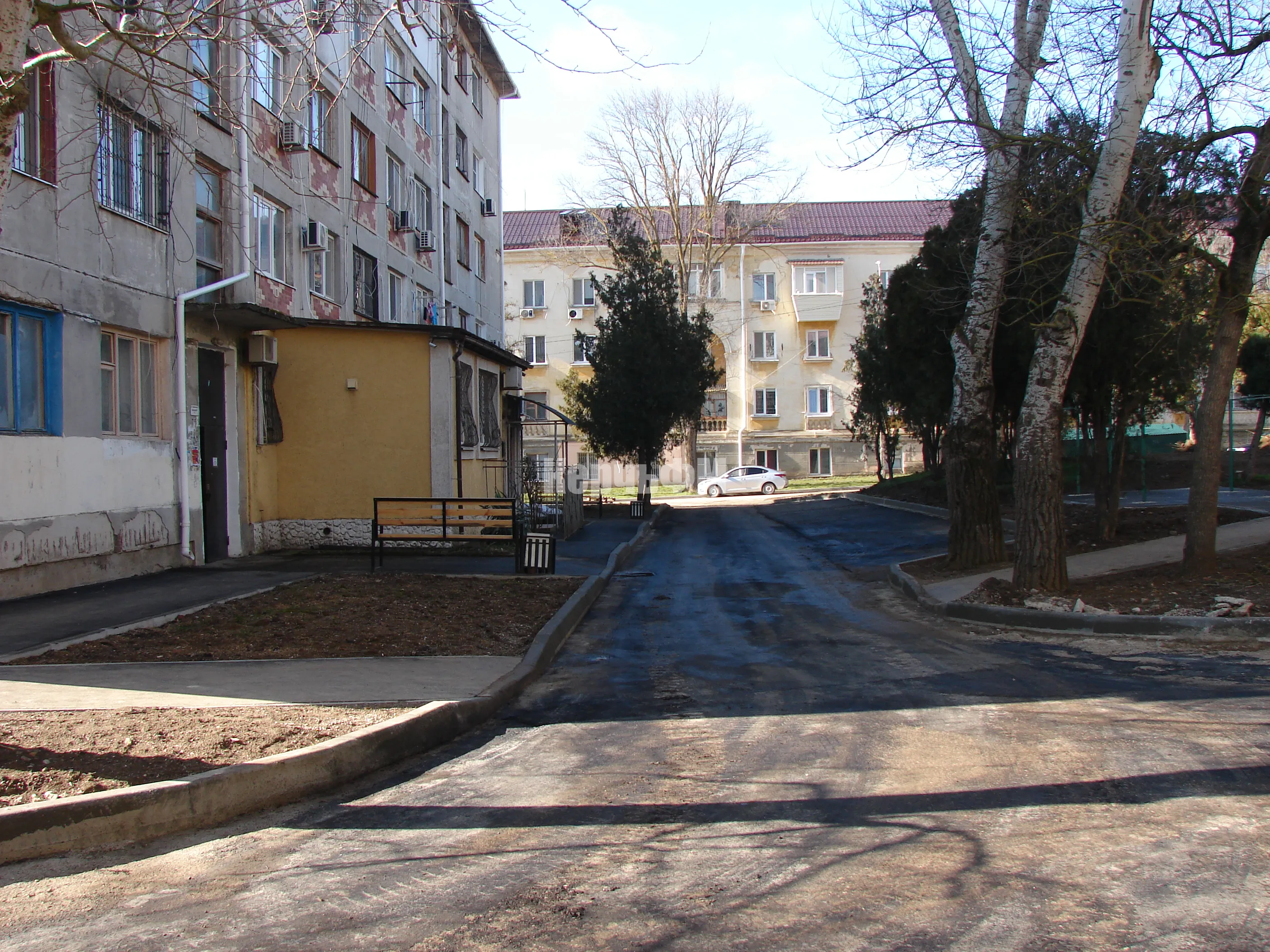 Ранее здесь появилась новые детские и бельевые площадки, проложены новые пешеходные дорожки, сделаны входные группы и зоны отдыха, установлены скамейки и новые фонари уличного освещения.