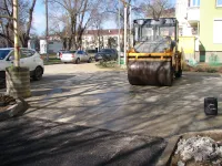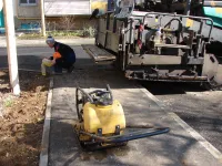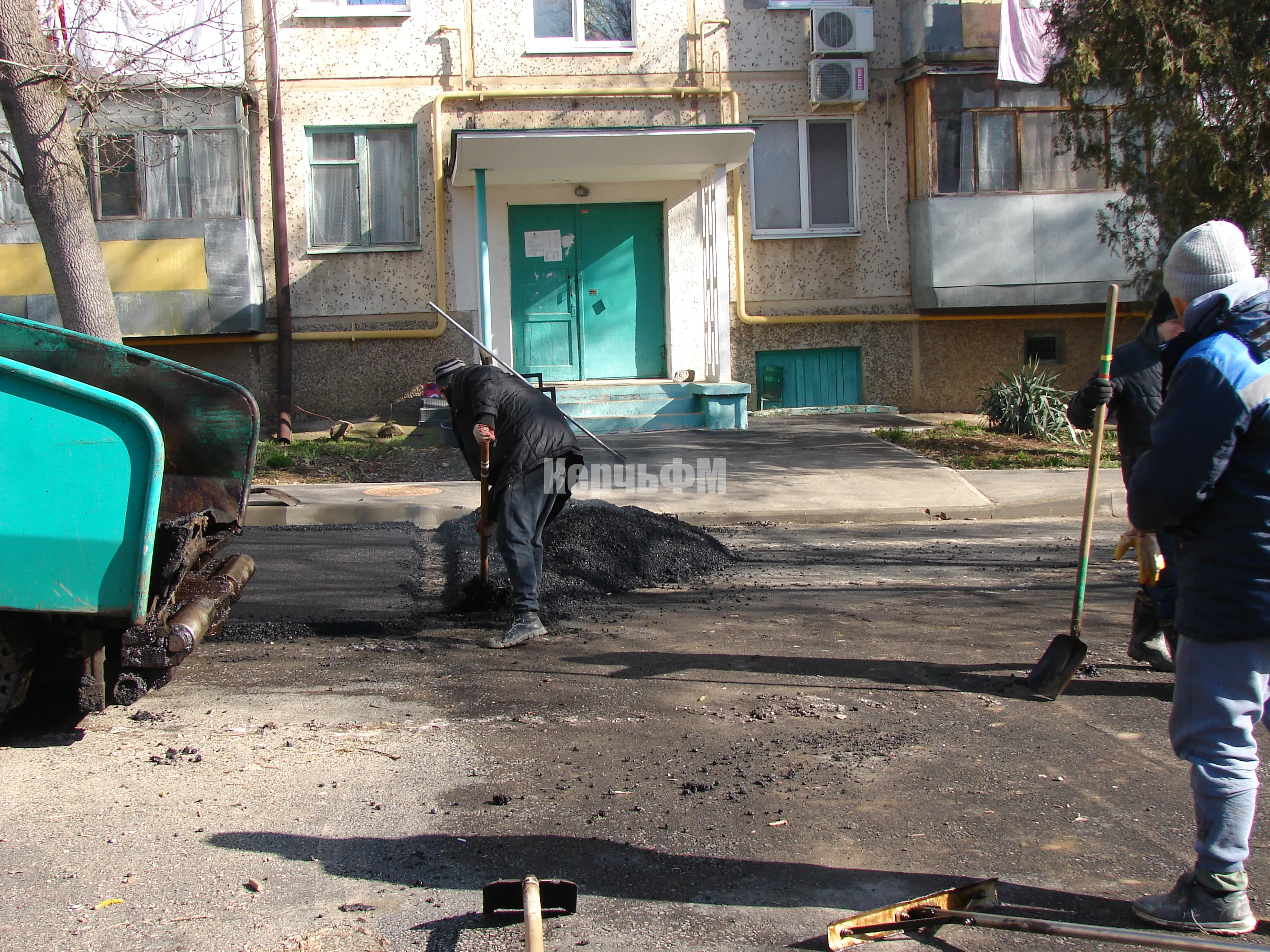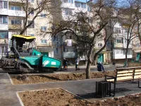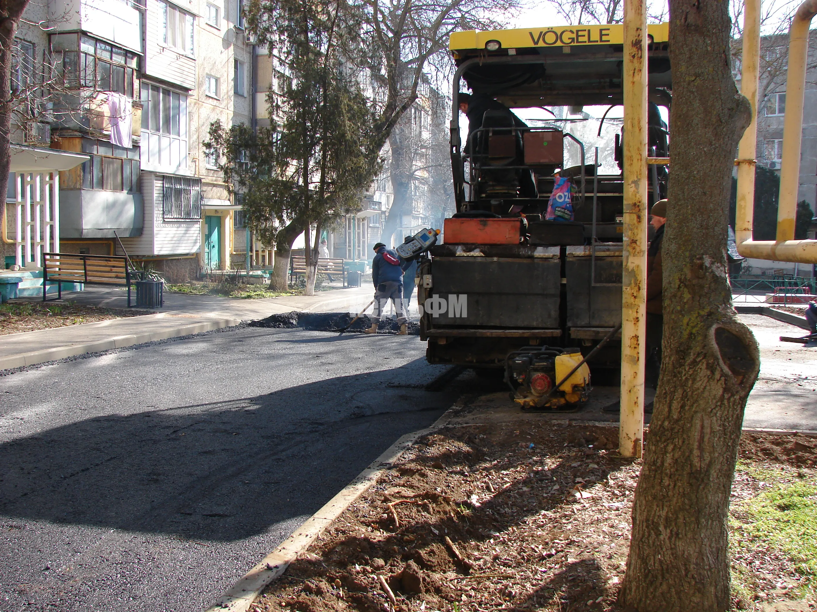 Во дворе района МКД по Войкова, 31 в Керчи укладывают второй слой асфальта