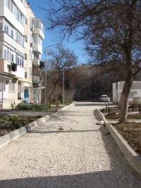 На придомовой территории по Казакова, 51 в Керчи тротуары готовы к асфальтировке