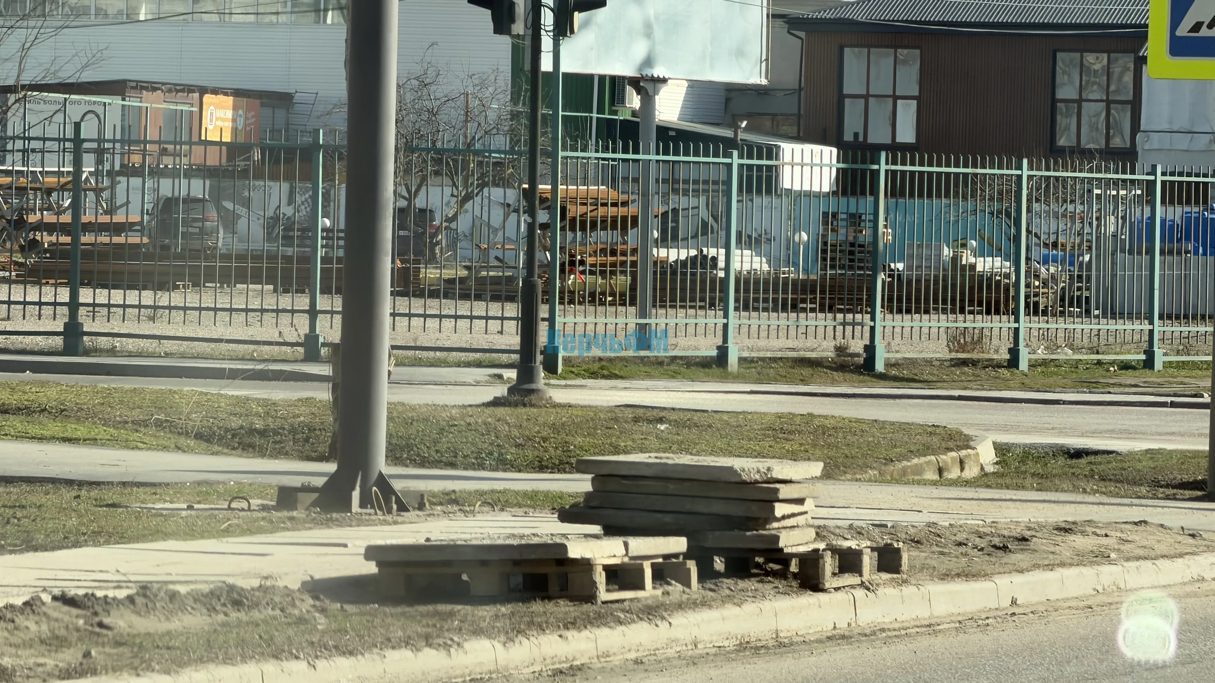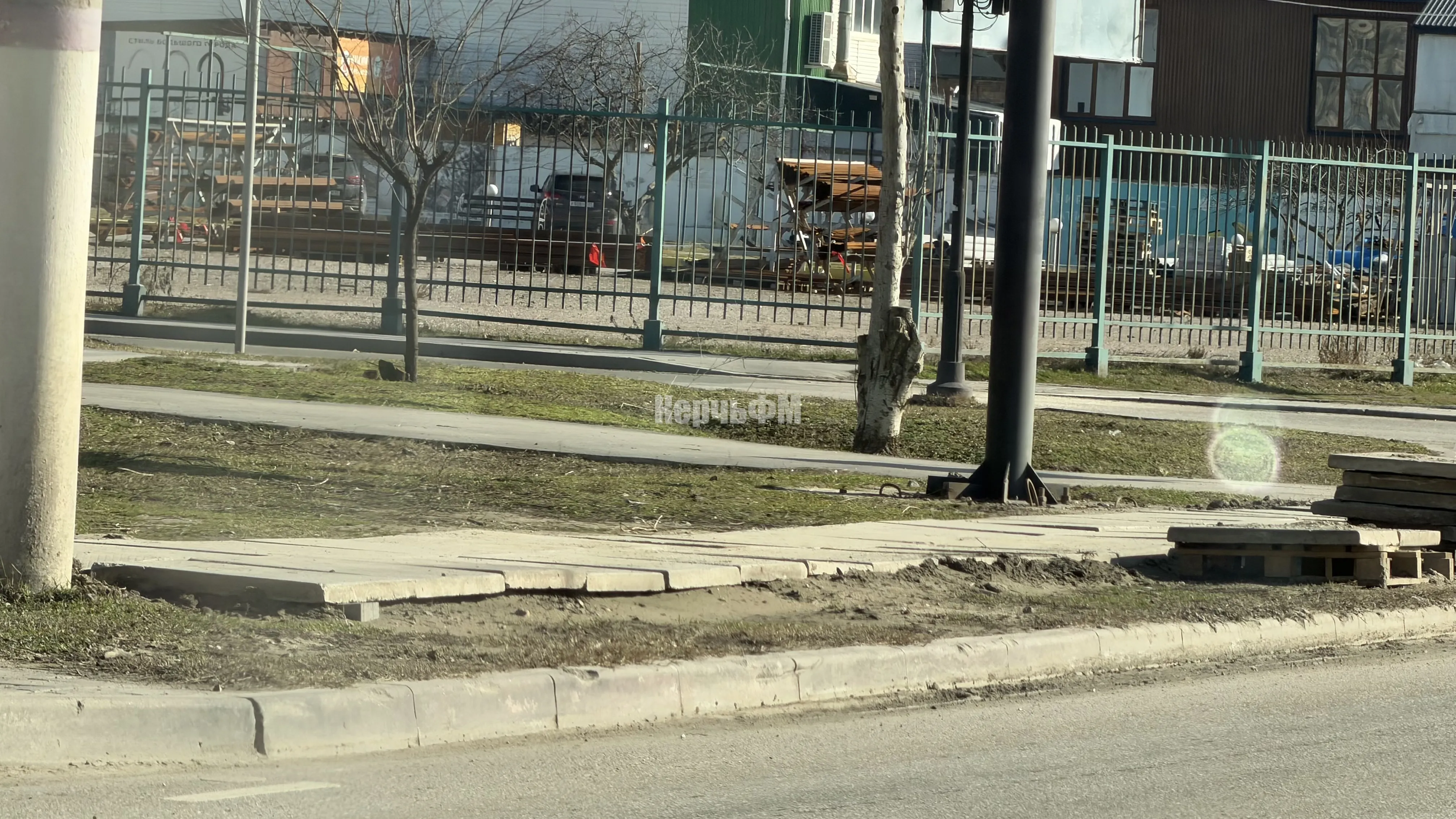 На Вокзальном шоссе в Керчи уложили «плавающий» тротуар из старых плит