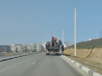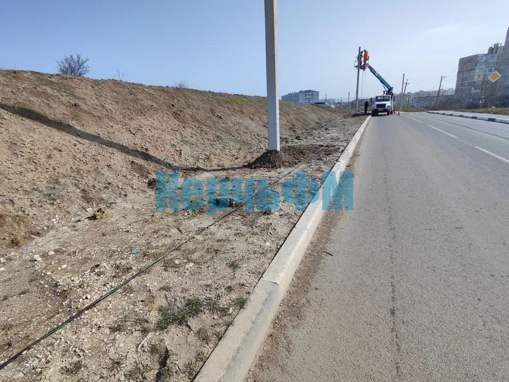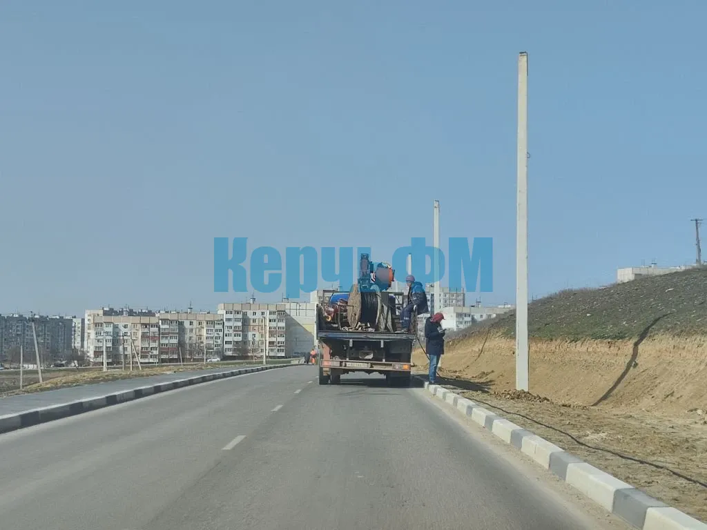 Вдоль новой дороги от Марата до Куль-Обинского шоссе в Керчи продолжают устанавливать опоры уличного освещения