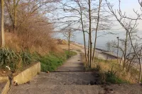 Благоустройство предусматривает двухуровневое зонирование: пешеходную аллею и асфальтированные проезды наверху склона, зону отдыха с тротуарами, навесами и малыми архитектурными формами на берегу.