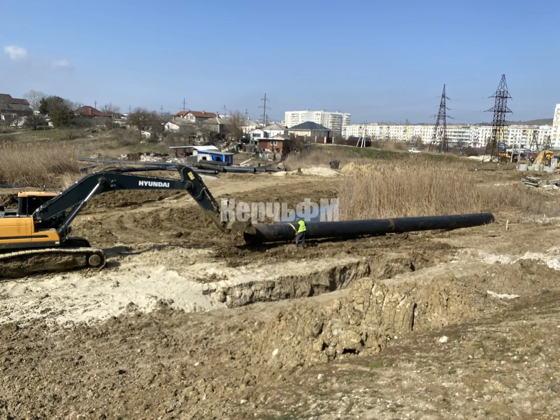 В районе Нижнего Солнечного, где тяжелая техника водоканала роет траншеи под укладку труб нового водовода,  специалисты Керченского РЭС в очередной раз устраняли аварию на электрокабеле.