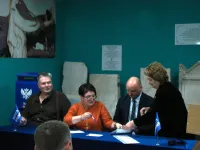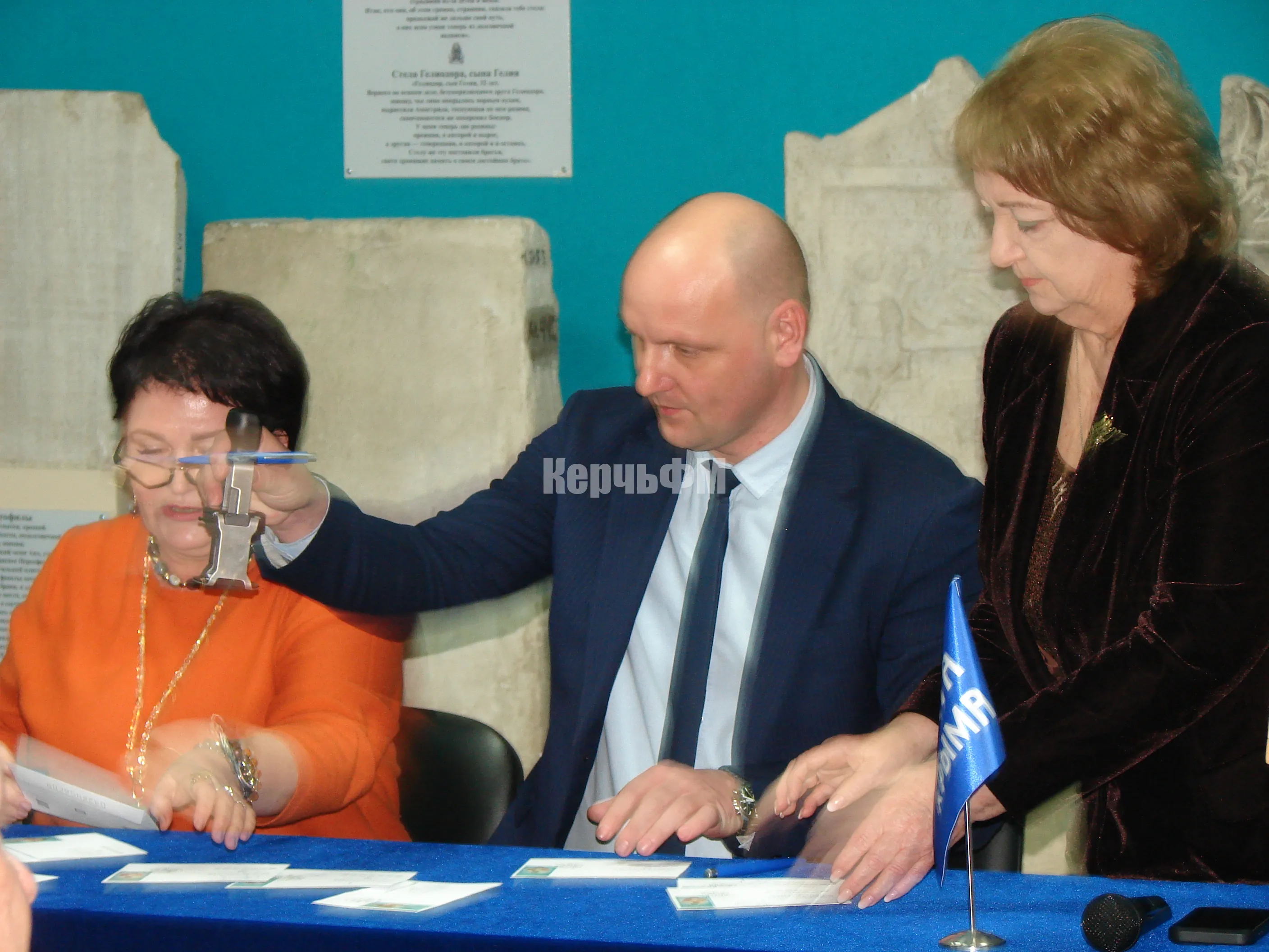 В церемонии спецпогашения марки приняли участие генеральный директор ВКИКМЗ Татьяна Умрихина, глава муниципального образования ГО Керчь Денис Колесник, директор ФГУП "Почта Крыма" Елена Принь.