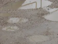 Сегодня дорога - в мелких частых ямах, которые после дождя заполняются водой.