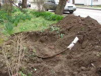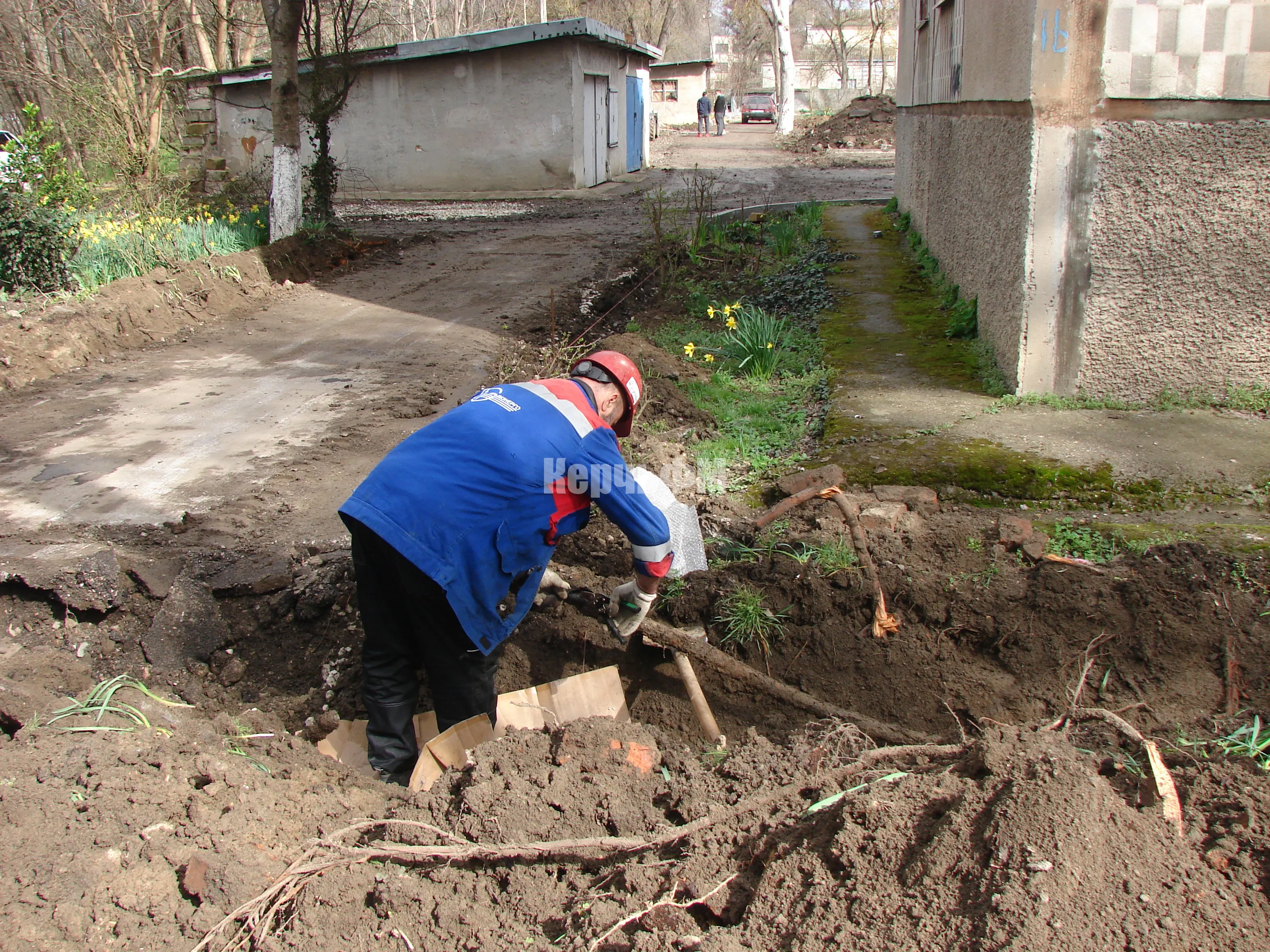 Порыв произошел во время выкопки траншеи под укладку бордюров.