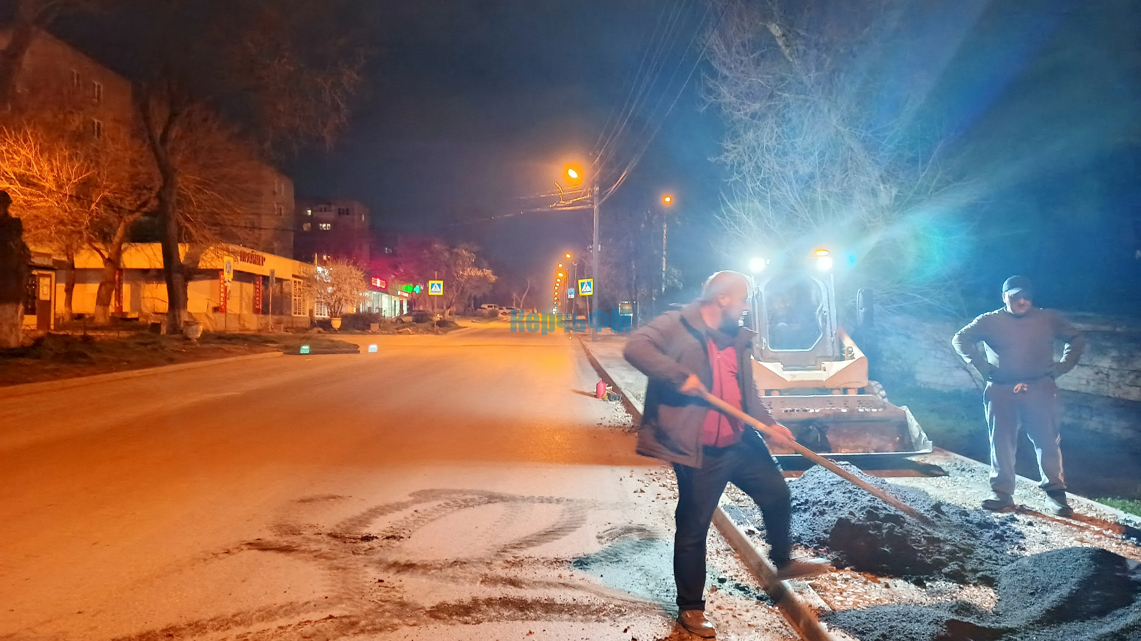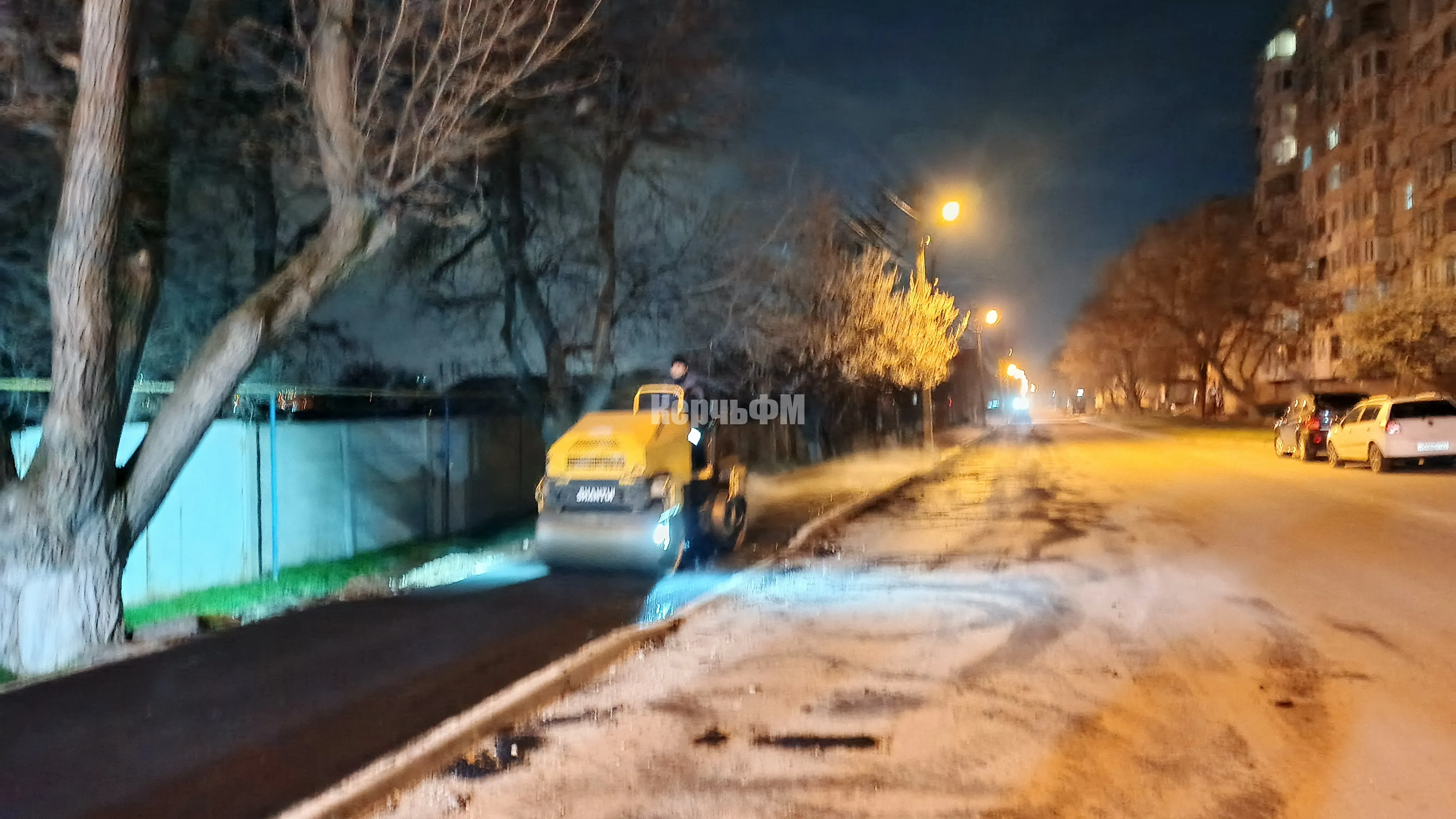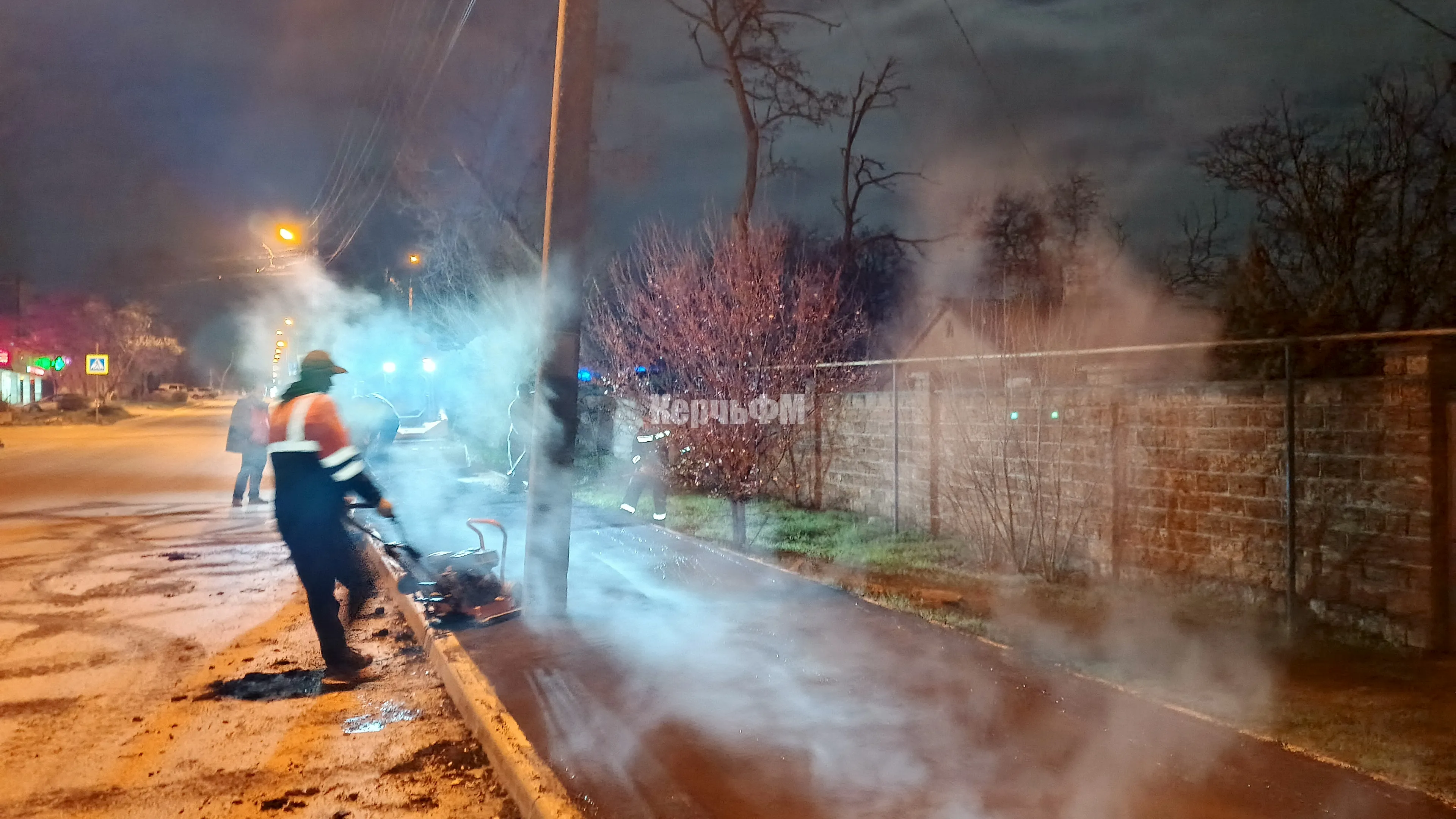 Сегодня ночью в Керчи асфальтировали новый тротуар по Кирова вдоль частного сектора