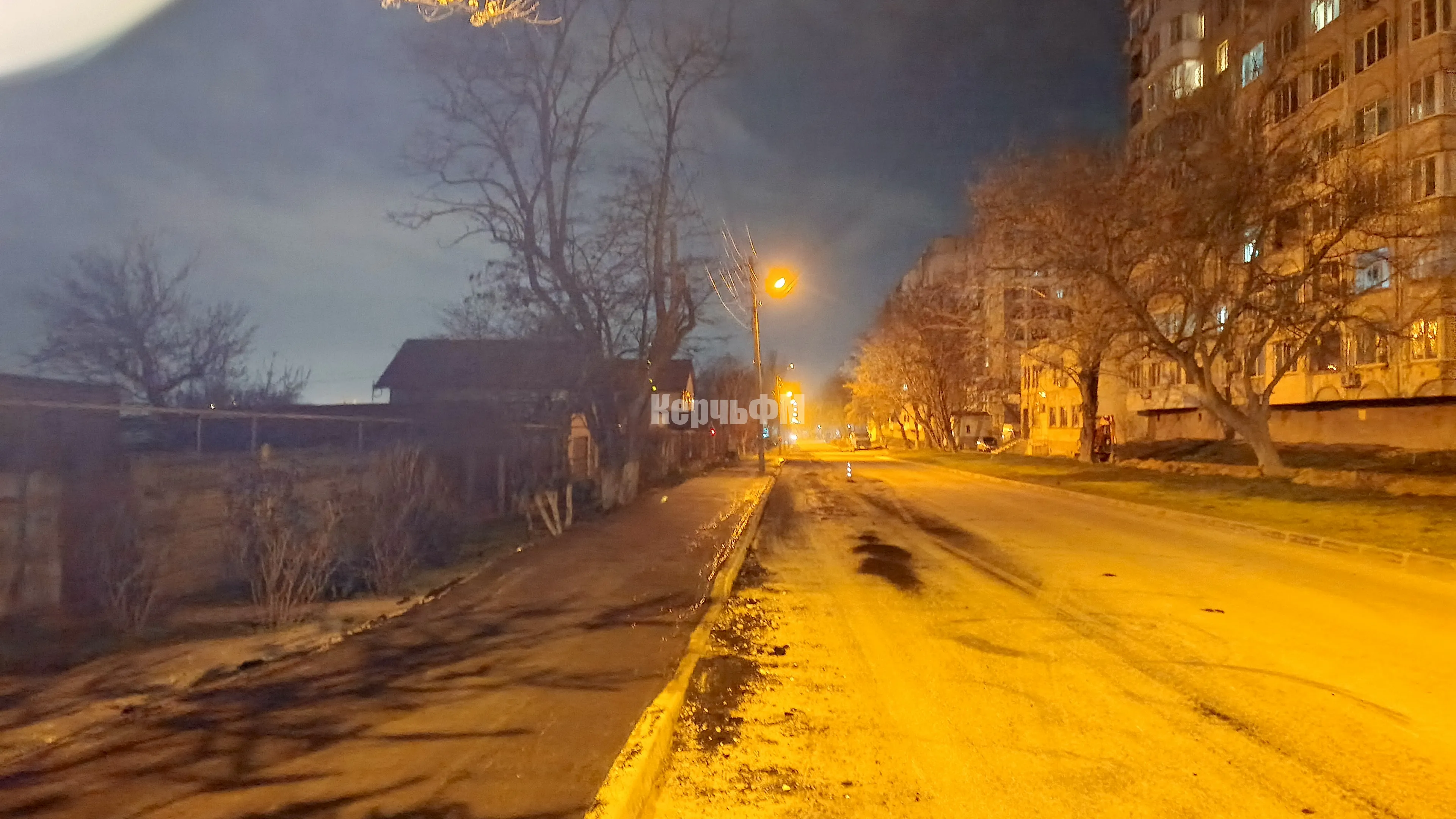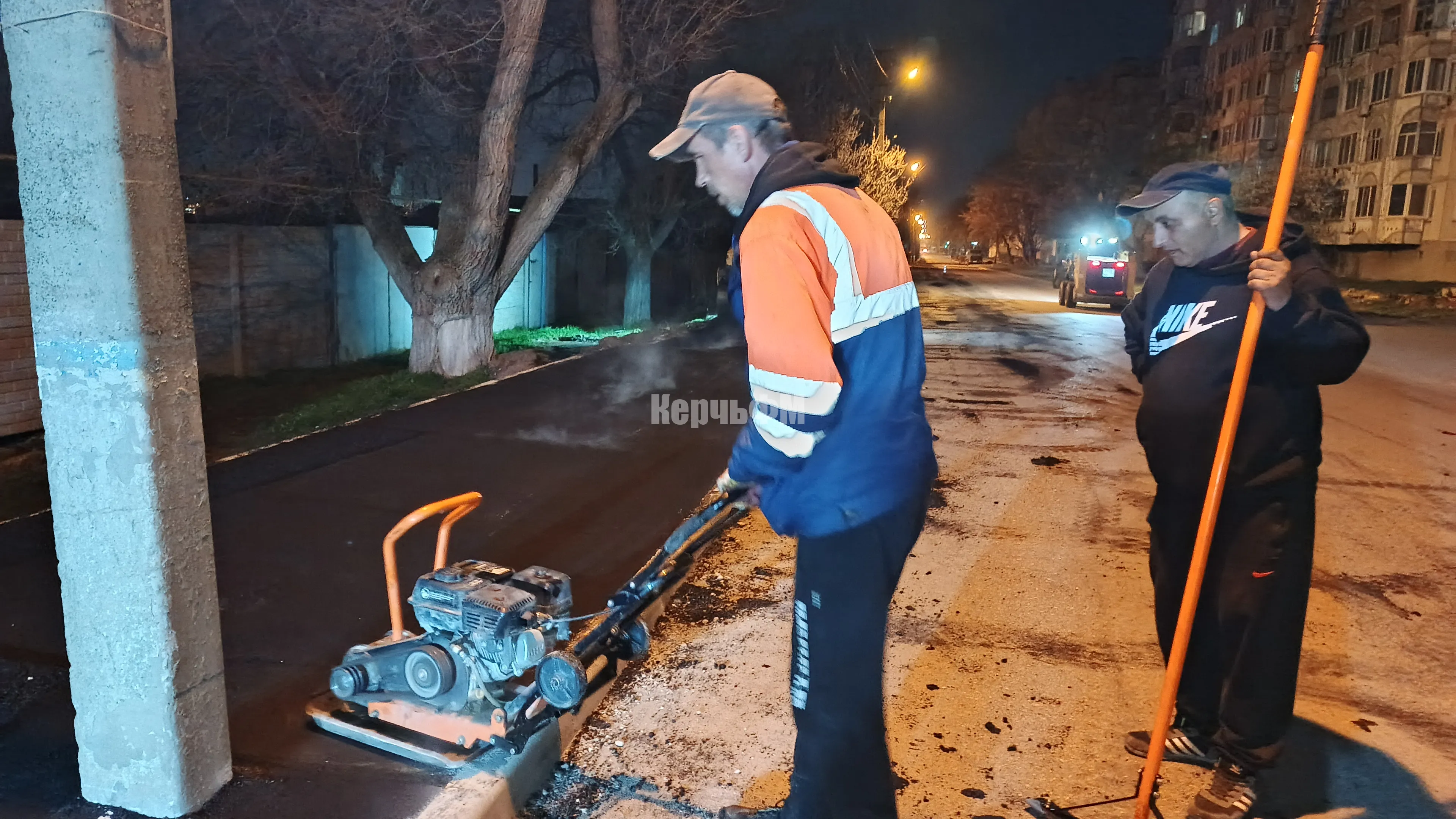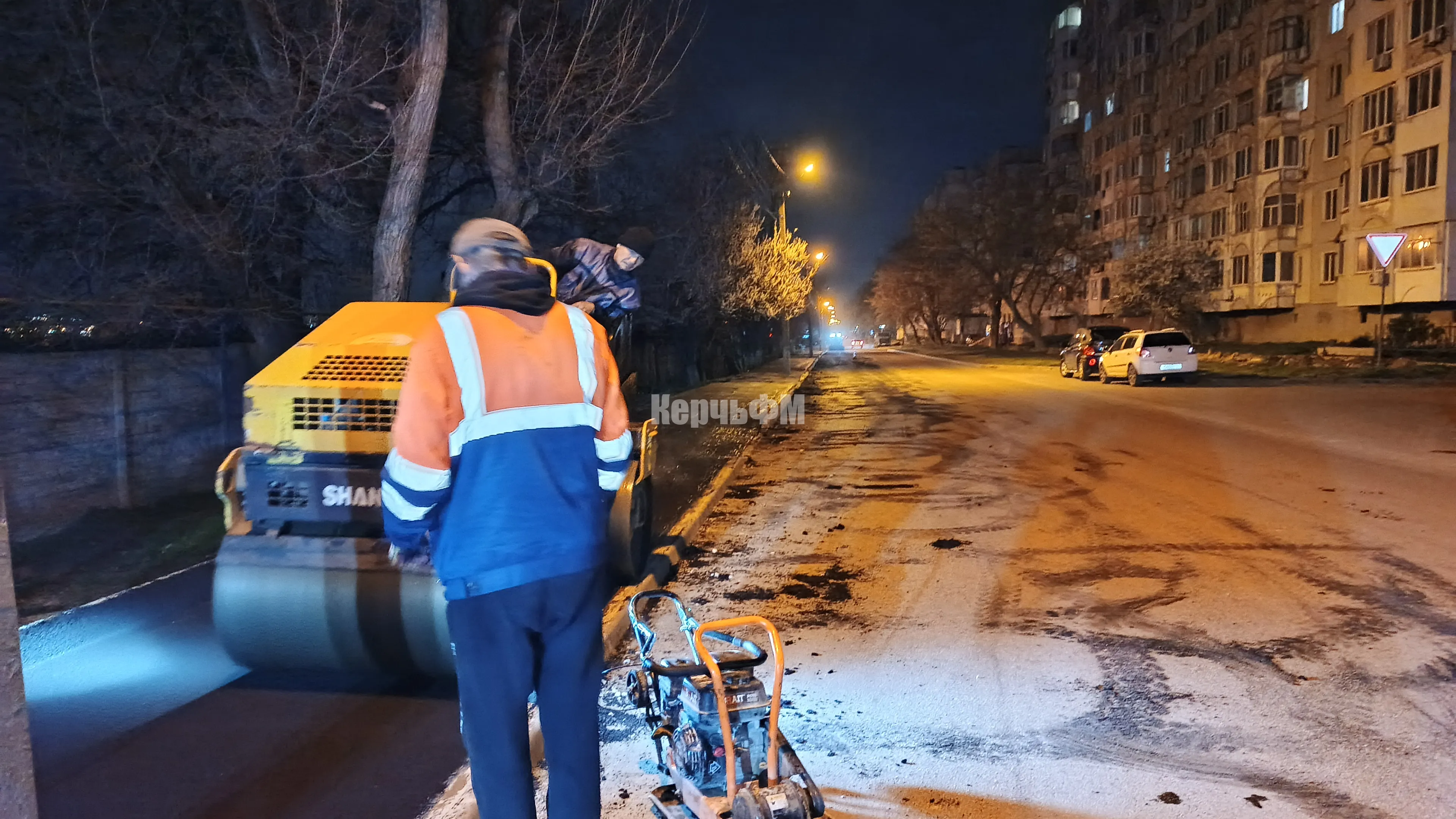 Сегодня ночью в Керчи асфальтировали новый тротуар по Кирова вдоль частного сектора