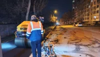 Сегодня ночью устроители подрядной организации "СТГ-Юг" продолжали асфальтировку нового тротуара по улице Кирова.