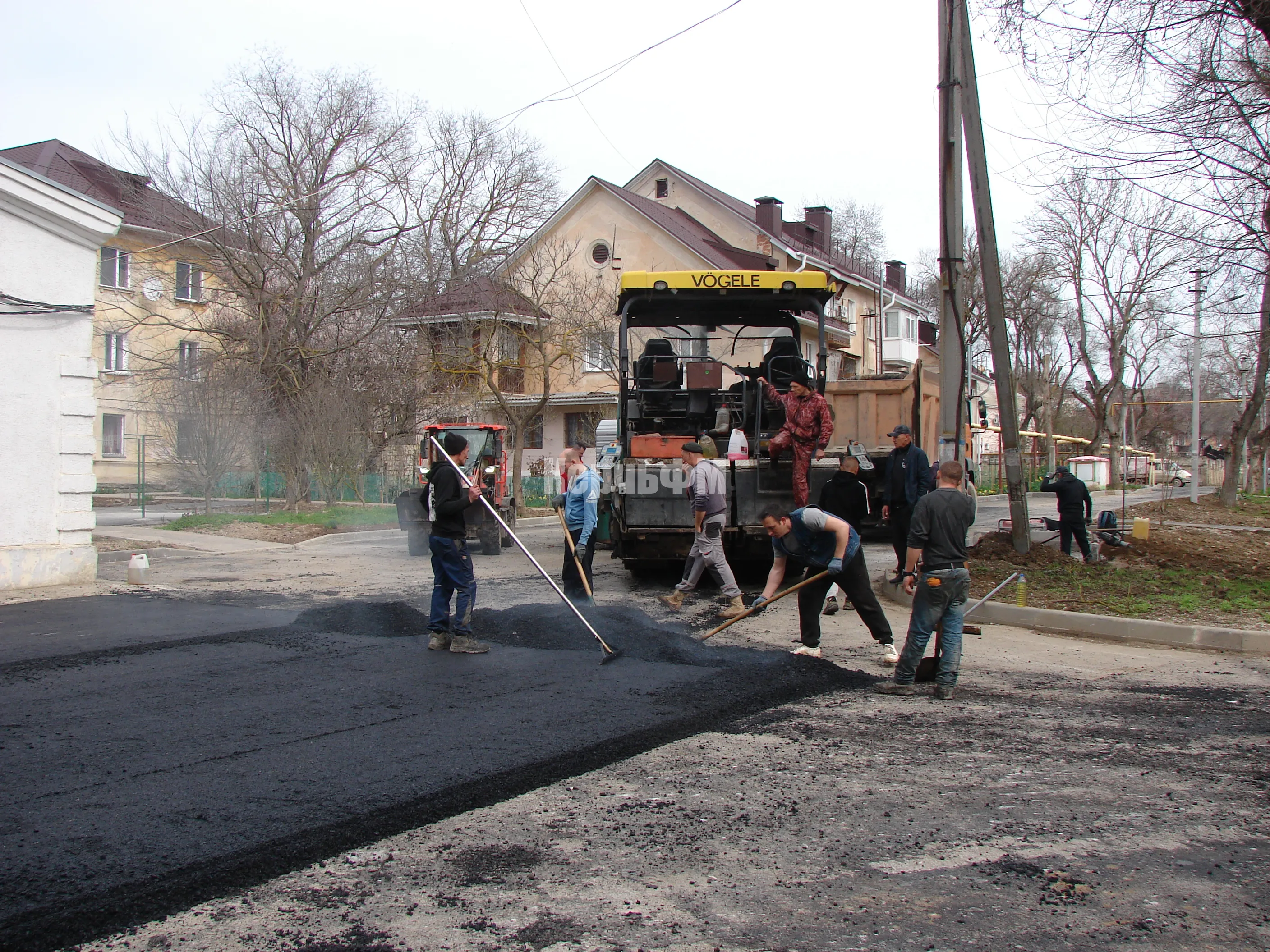 Сегодня на внутриквартальных дорогах района дома Казакова, 48, 46 продолжилась укладка второго слоя асфальта.