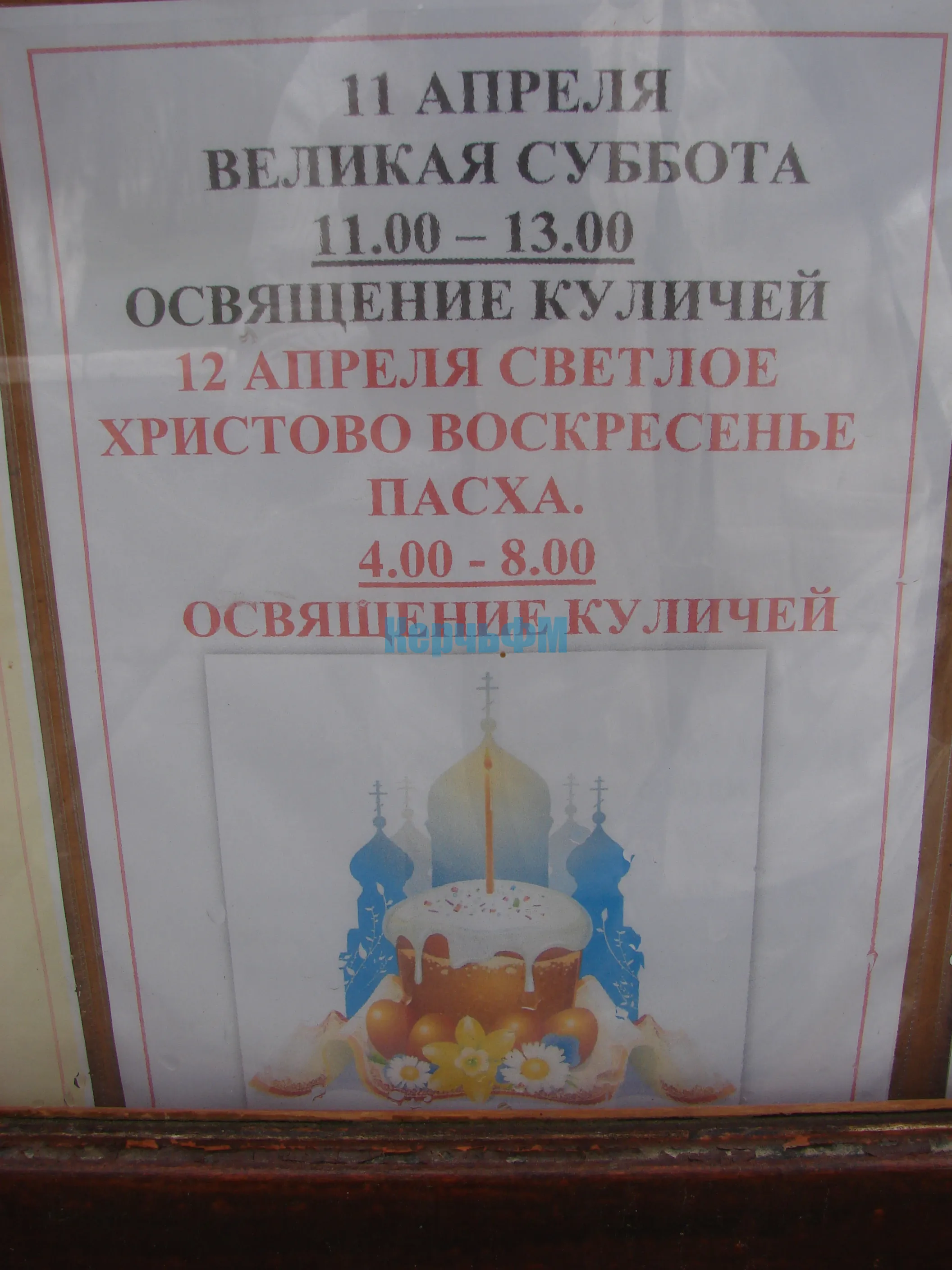 Священник пригласил керчан на ночные богослужения, которые пройдут с 11 на 12 апреля, отметив, что освящение традиционных пасхальных яств состоится в субботу с 11:00 до 13:00 и в воскресенье с 4:00 до 8:00.