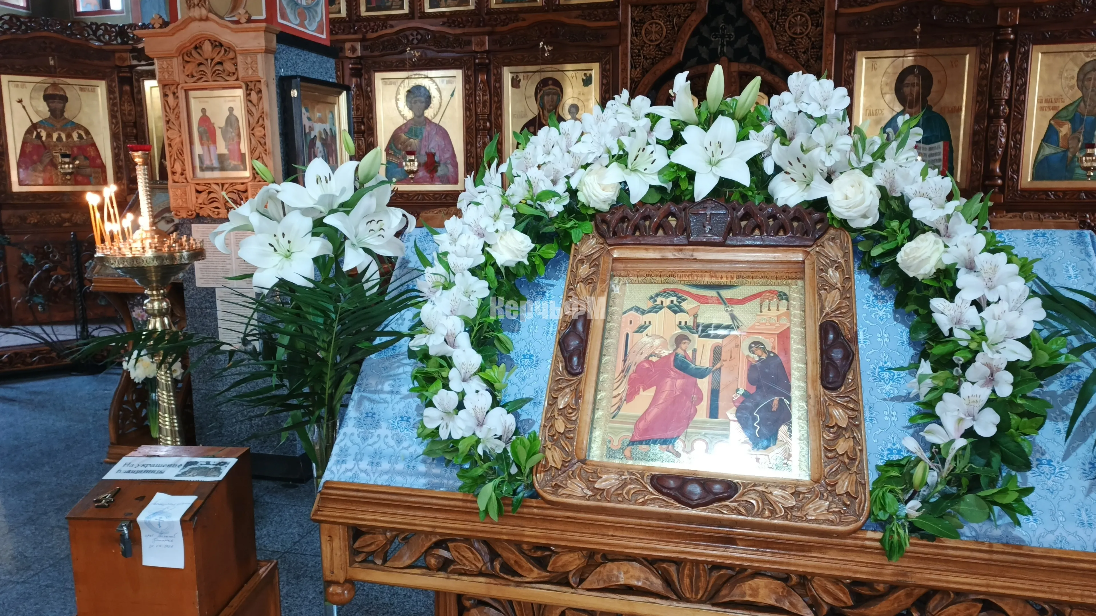 Алексей от имени настоятеля храма, протоиерея Николая, поздравил православных керчан с праздником, рассказал его суть и напомнил о приближающемся празднике Святой Пасхи.
